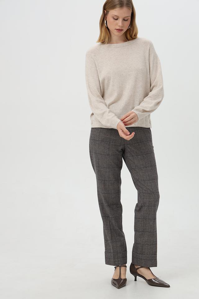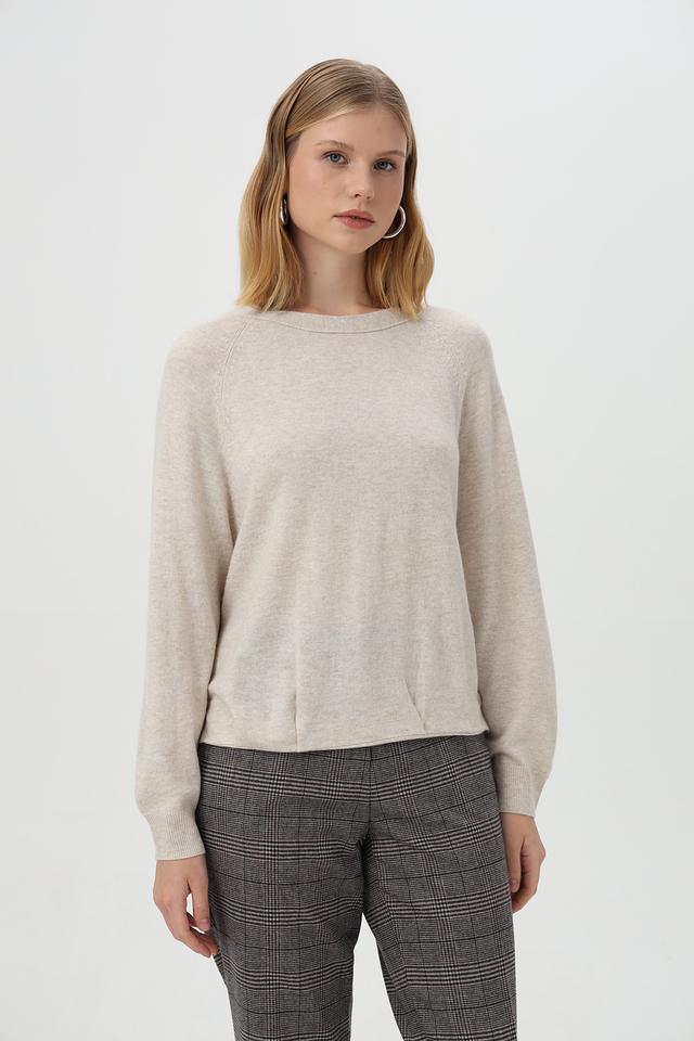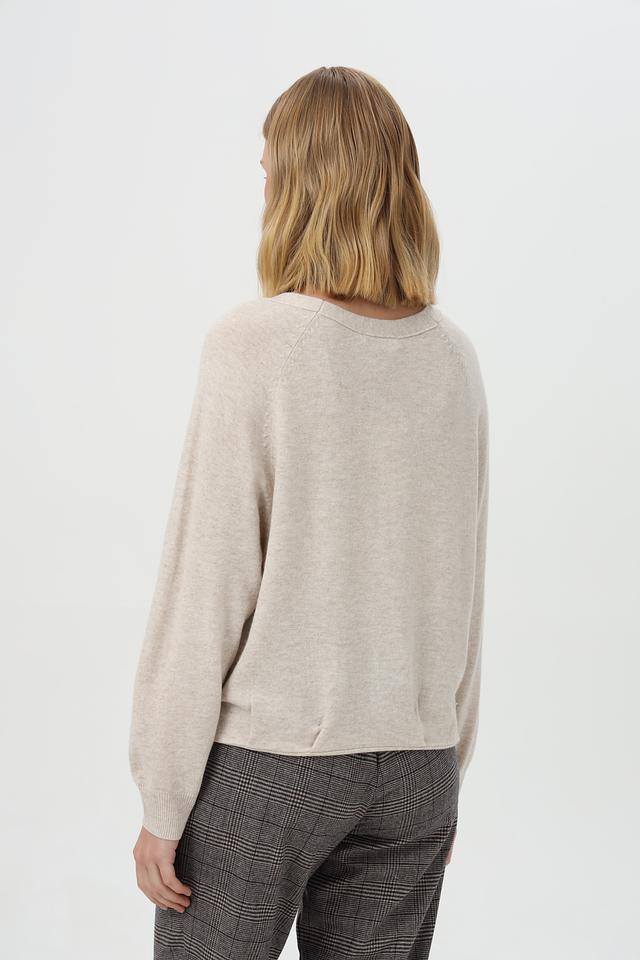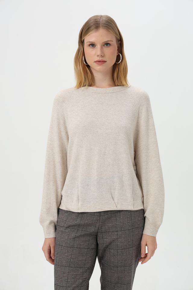 Бежевый пуловер Oui из смесового волокна с округлым вырезом и декоративными пуговицами. Изделие выполнено из полиамида, вискозы, шерсти и кашемира, обеспечивая комфорт и мягкость. Состав: полиамид 45%, вискоза 30%, шерсть 20%, кашемир 5%