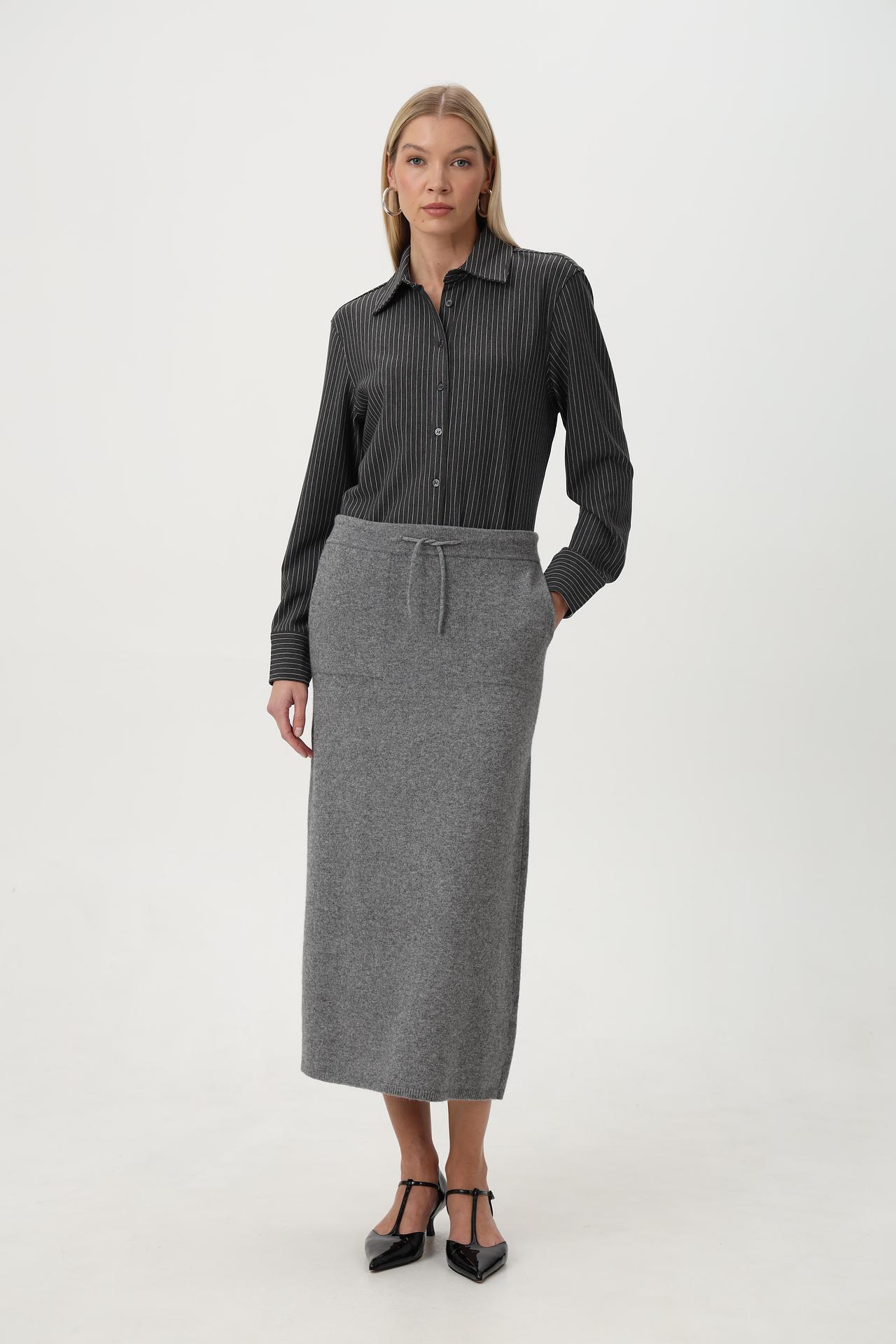 - Универсальность: Юбка прекрасно сочетается как с элегантными блузками и каблуками, так и с простыми футболками и кроссовками, позволяя создавать разнообразные стильные комплекты.