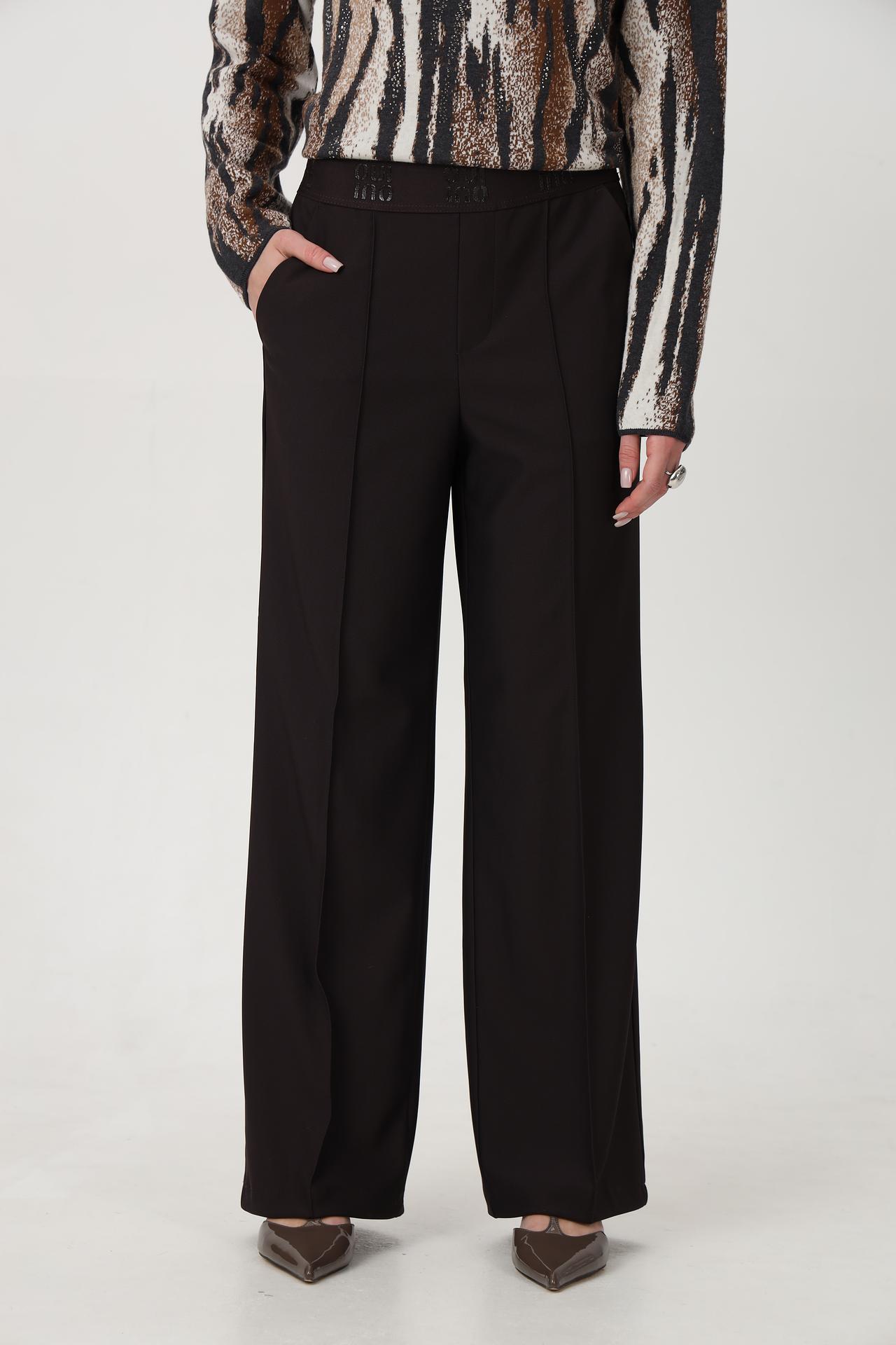 - Фасон: Широкие брюки прямого кроя. Модель визуально удлиняет ноги и создает женственный силуэт. Аккуратные стрелки добавляют изделию строгости и элегантности.