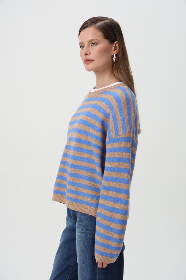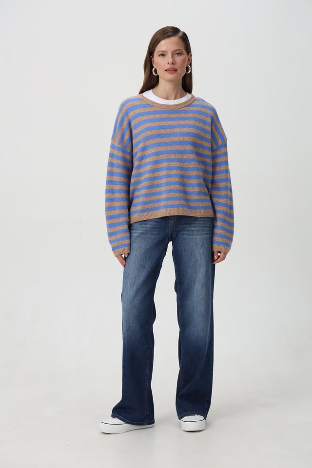 Голубой пуловер Oui с горизонтальными полосами станет отличным дополнением к вашему гардеробу. Изготовлен из мягкой смеси шерсти и полиамида, обеспечивающей комфорт и тепло. Свободный крой. Состав: полиамид 44%, шерсть 32%, полиэстер 21%, эластан 3%