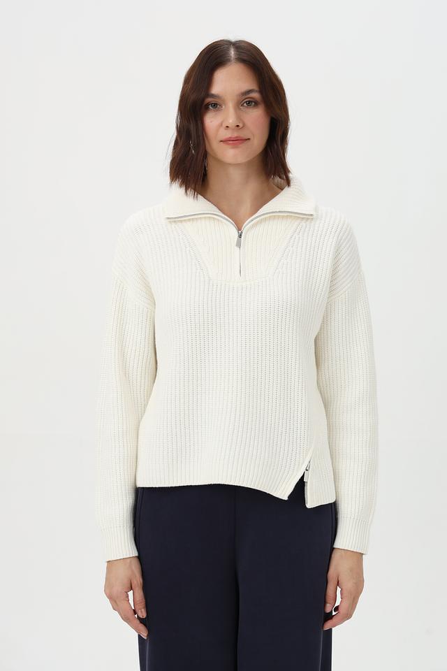 Пуловер Oui с молнией молочный