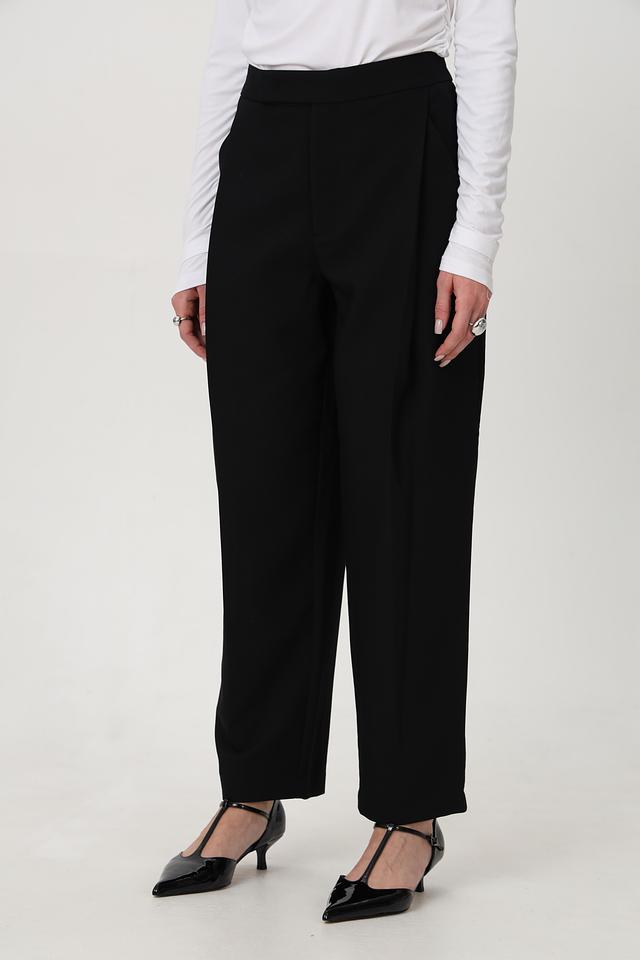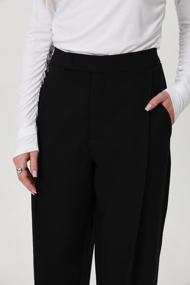 Состав ткани: 79% полиэстер, 17% вискоза, 4% эластан. Этот микс материалов обеспечивает приятные тактильные ощущения, хорошую посадку и легкий уход за изделием. Брюки идеально подойдут для создания деловых и повседневных образов.