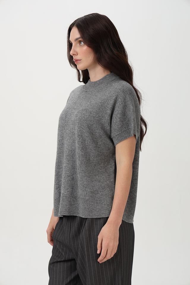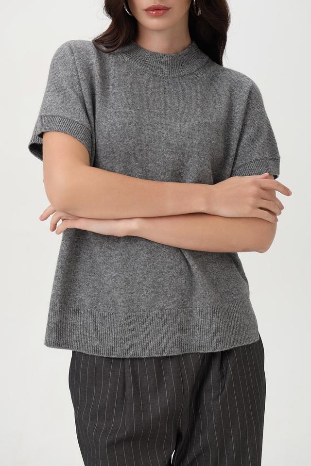 Пуловер Oui серый с коротким рукавом