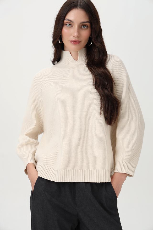 Особенностью данного пуловера является оригинальный вырез на горловине, который добавляет изделию изысканности и стиля. Пуловер выполнен из мягкого трикотажа, в состав которого входит вискоза, полиэстер и полиамид.