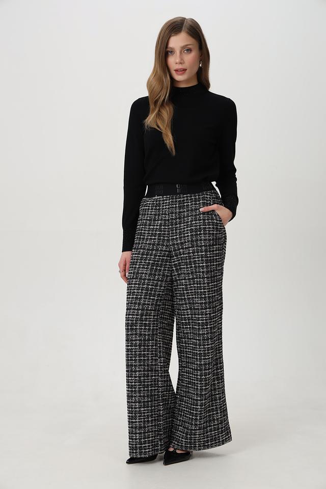 Женские брюки Oui – это отличный выбор для тех, кто ценит комфорт и стиль. Модель выполнена в классической клетчатой расцветке, сочетающей белый и чёрный цвета.