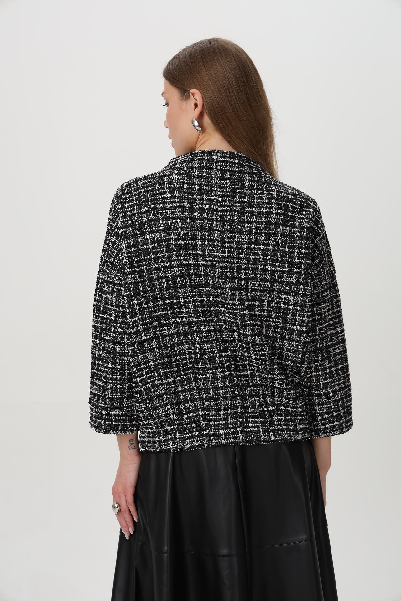- Цвет: Универсальный черно-белый цвет, который легко сочетается с другими оттенками и элементами гардероба. Аккуратная клетка создает элегантный и сдержанный вид.