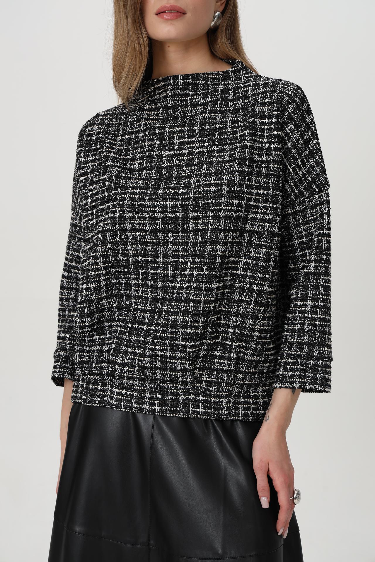 Элегантный пуловер от Oui, выполненный в классическом черно-белом цвете, станет неотъемлемой частью вашего гардероба. Текстурная ткань с мелкой клеткой придает изделию особый шарм и изысканность, делая его идеальным выбором как для повседневных, так и для более официальных образов. Модель свободного кроя с рукавами три четверти обеспечивает комфорт и свободу движений, а эластичная резинка по низу изделия подчеркивает силуэт. Этот пуловер прекрасно сочетается с различными предметами одежды, от классических брюк до юбок, создавая утонченные и модные ансамбли. Идеальный выбор для создания стильных и актуальных образов на каждый день.