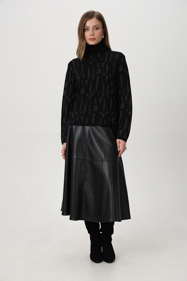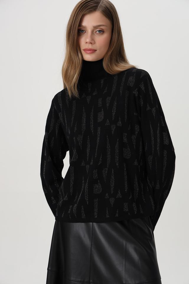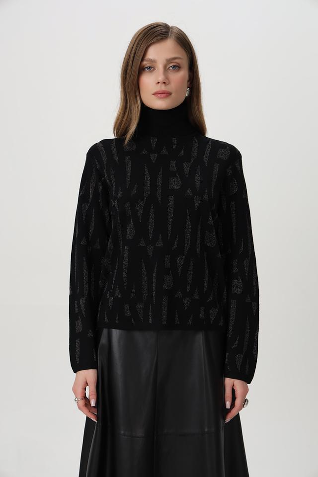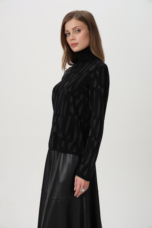 Модель имеет высокий воротник и длинные рукава, что делает его подходящим для прохладной погоды. Свободный крой обеспечивает комфорт в носке и позволяет легко комбинировать пуловер с другими элементами гардероба.