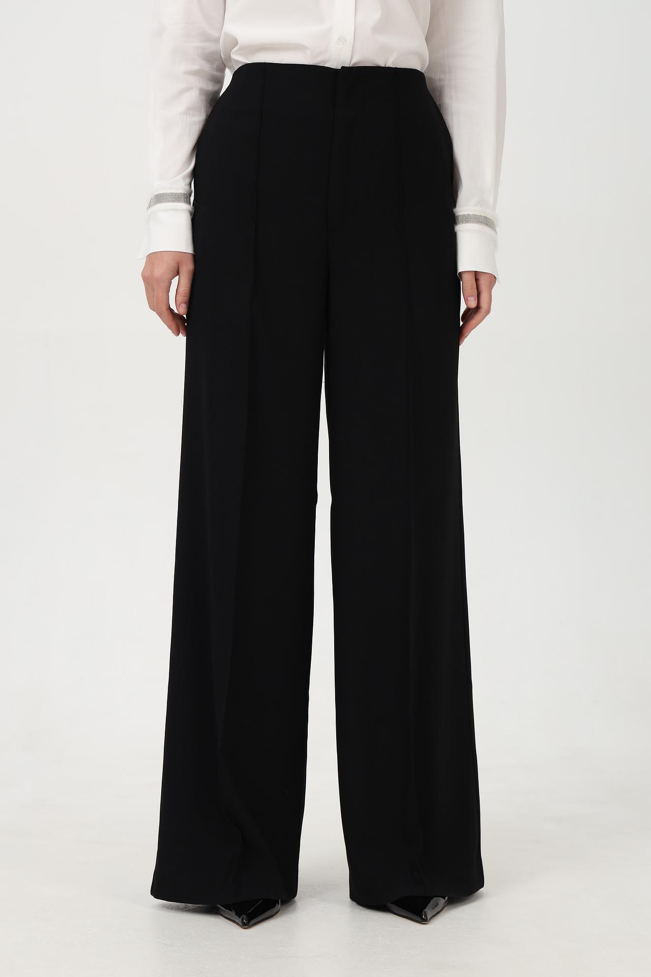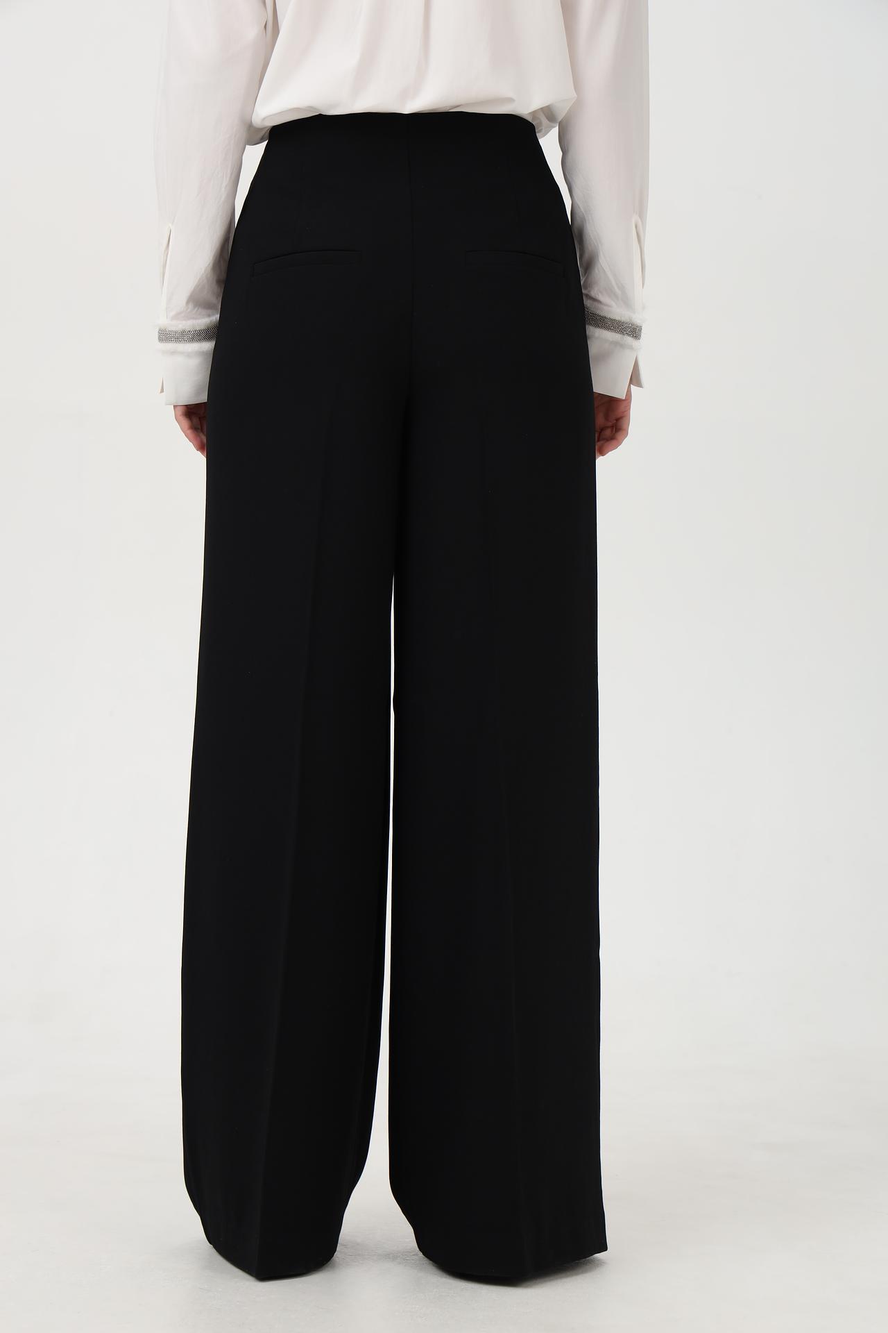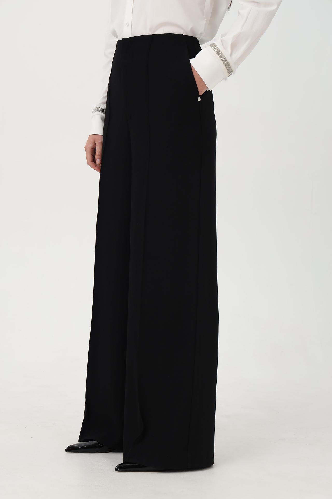 - Крой: Палаццо. Широкие брюки от бедра визуально удлиняют ноги и создают женственный силуэт.