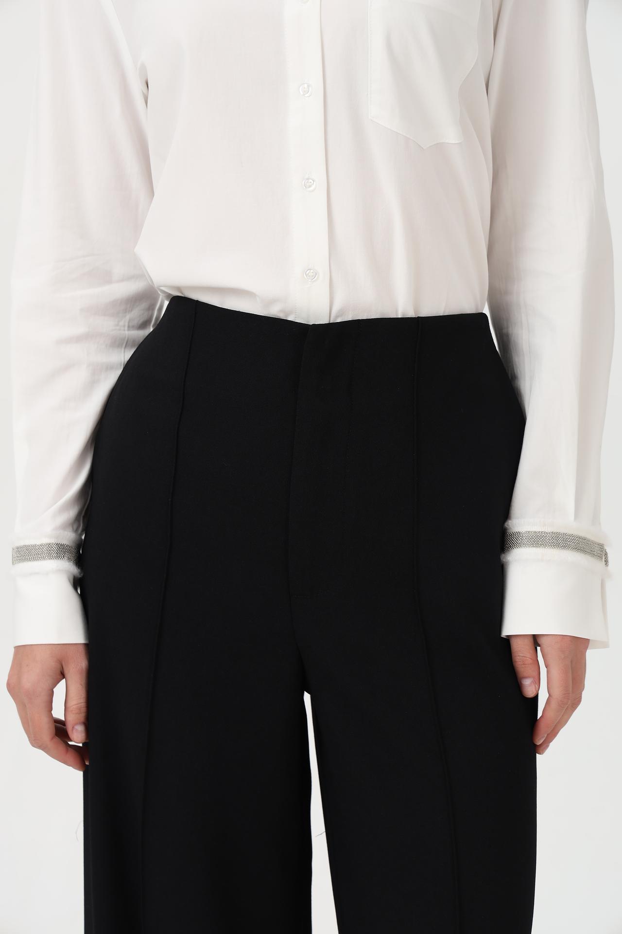 - Детали: Высокая посадка подчеркивает талию, а аккуратные стрелки придают изделию деловой шик.