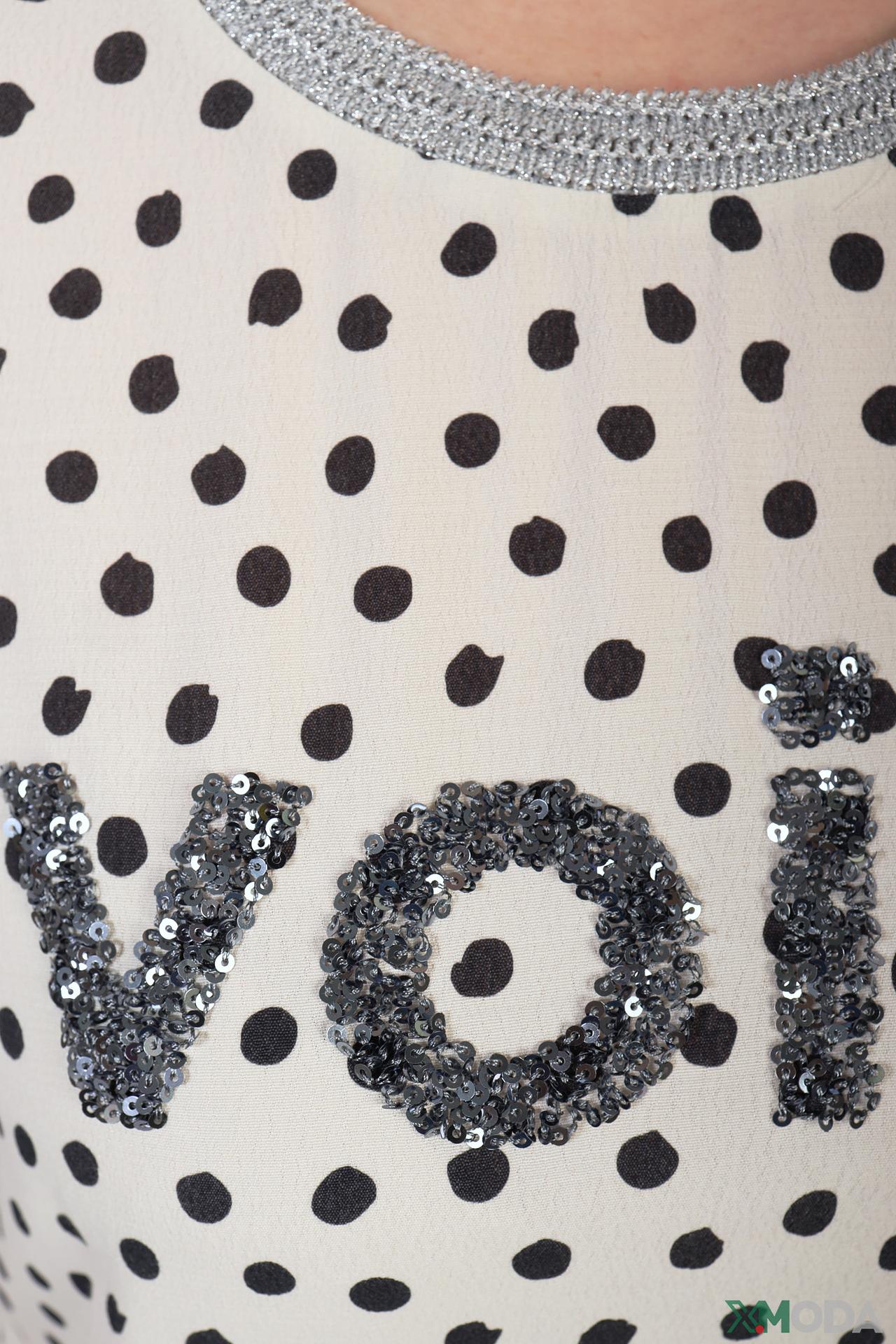 - Оригинальный дизайн. Принт в горошек и надпись из пайеток добавляют образу индивидуальность и шарм.