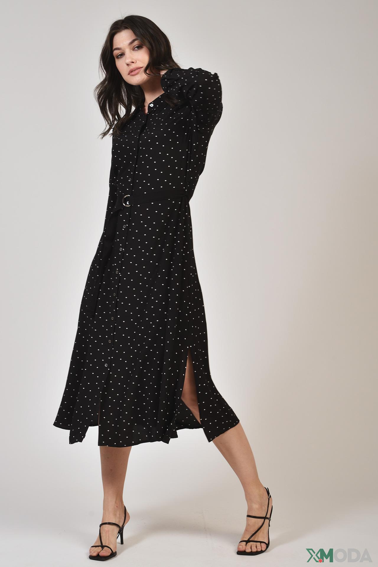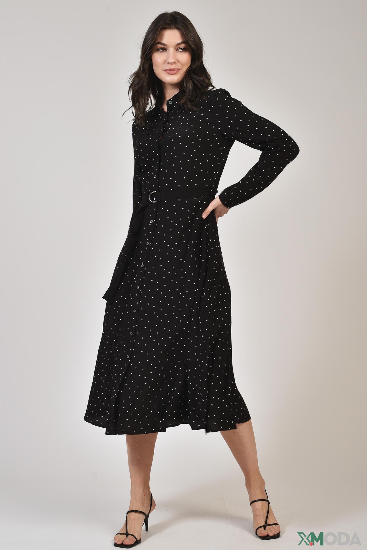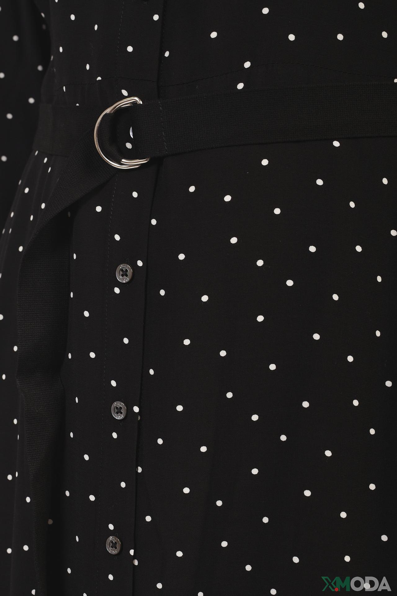 Элегантное платье Oui с мелким горошком – идеальный выбор для создания утонченного образа. Приталенный силуэт и акцент на талии с помощью пояса выгодно подчеркнут достоинства фигуры. Универсальный черный цвет в сочетании с белым принтом делает это платье подходящим для множества случаев, от повседневных выходов до особых мероприятий. Вискоза обеспечивает комфорт и приятные тактильные ощущения.
