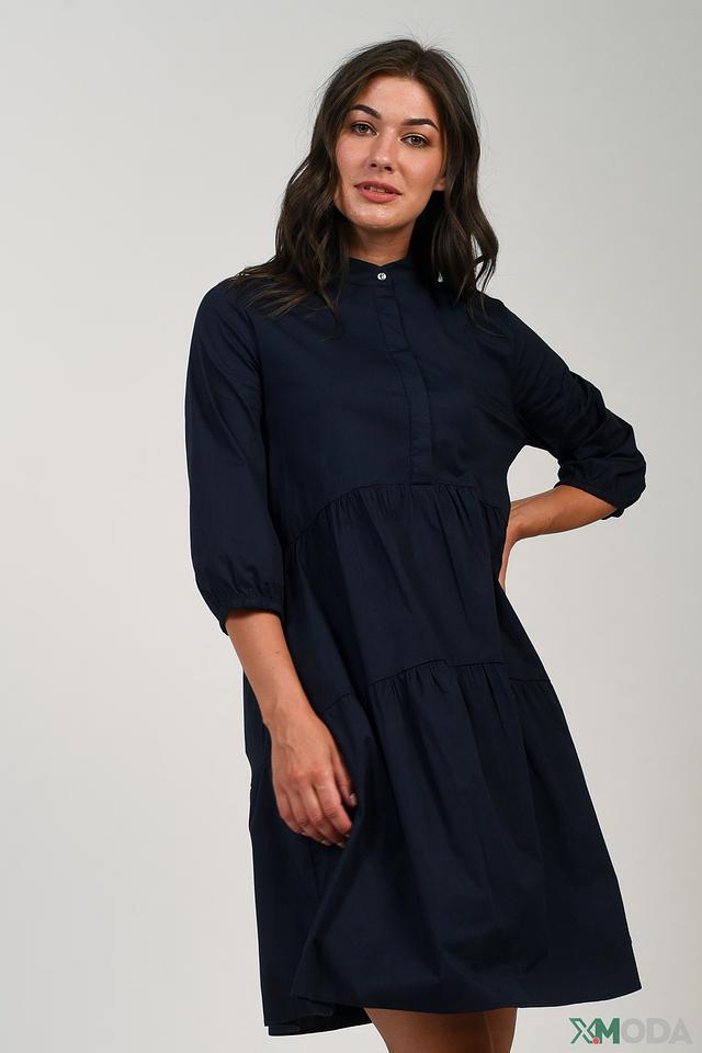 Тёмно-синее платье от Oui выполнено из хлопка с добавлением эластана, имеет рубашечный крой и сборки для создания женственного силуэта. Удобная модель для повседневной носки. Состав: хлопок 95%, эластан 5%
