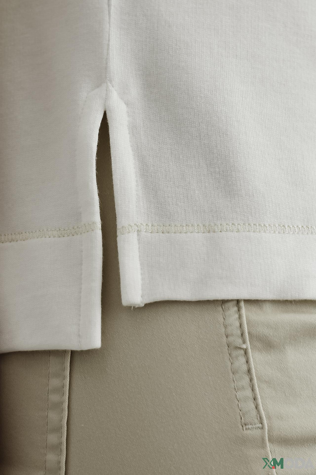 • Боковые разрезы: Небольшие разрезы по бокам придают футболке легкость и добавляют изюминку в образ.