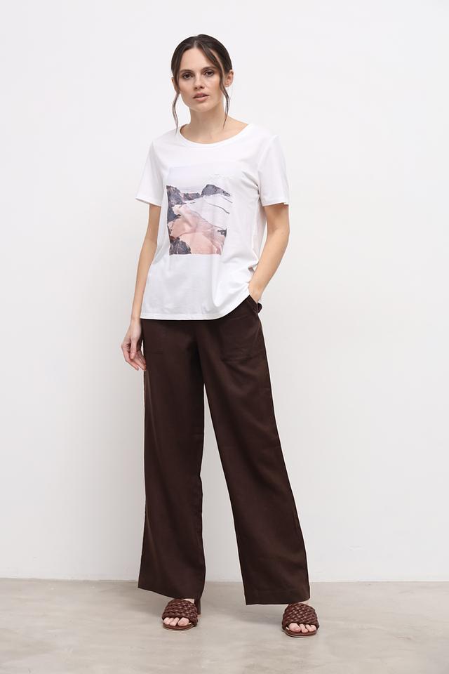 Белая футболка от Oui с оригинальным принтом — стильное и комфортное решение для повседневного образа. Изготовлена из мягкого хлопка с модалом, обеспечивающего приятные ощущения на коже. Состав: хлопок 50%, модал 50%