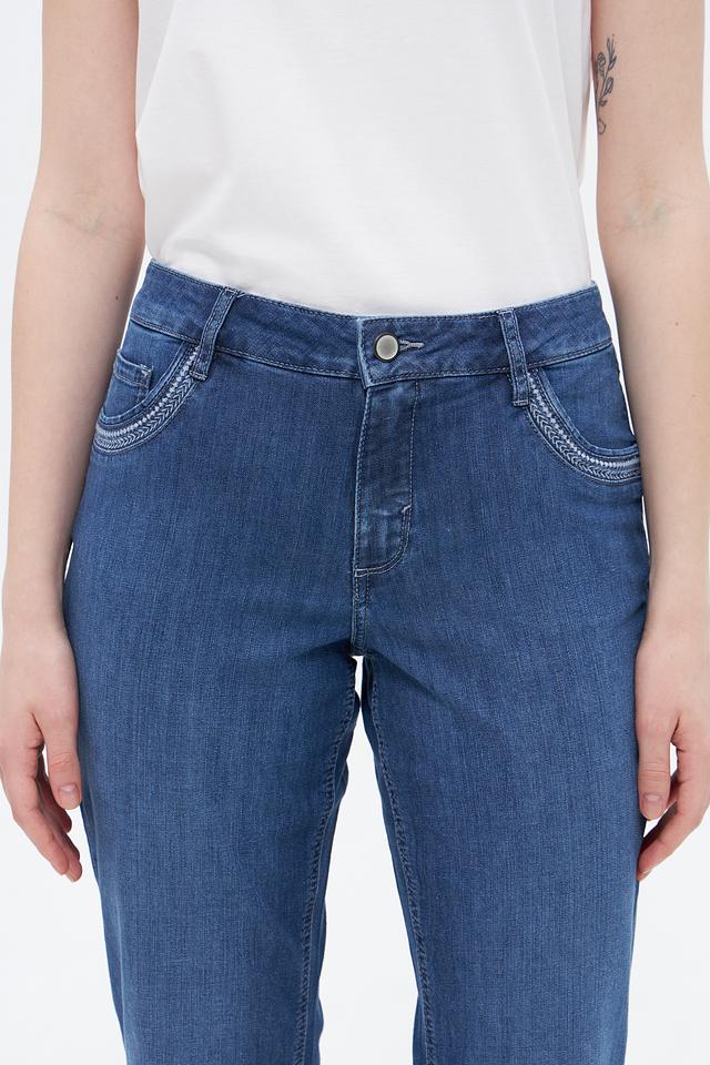 Декоративные элементы в виде вышивки на задних карманах придают джинсам стильный и современный вид. Классическое оформление включает в себя пять карманов, шлевки для ремня и металлическую фурнитуру. Данная модель станет отличным дополнением к вашему гардеробу.