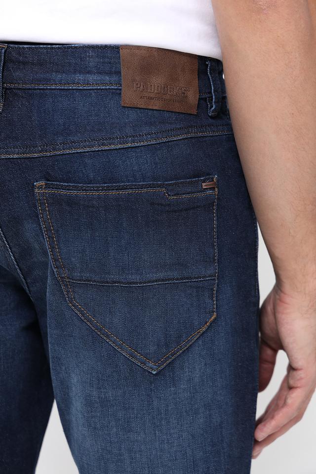Детали кроя включают стандартную высоту пояса и классическую пятикарманную конструкцию. Задние карманы декорированы фирменной нашивкой Paddoks. Застежка – металлическая пуговица и молния. Текстура ткани имеет эффект легкого поношенности, что придает джинсам стильный и современный вид.