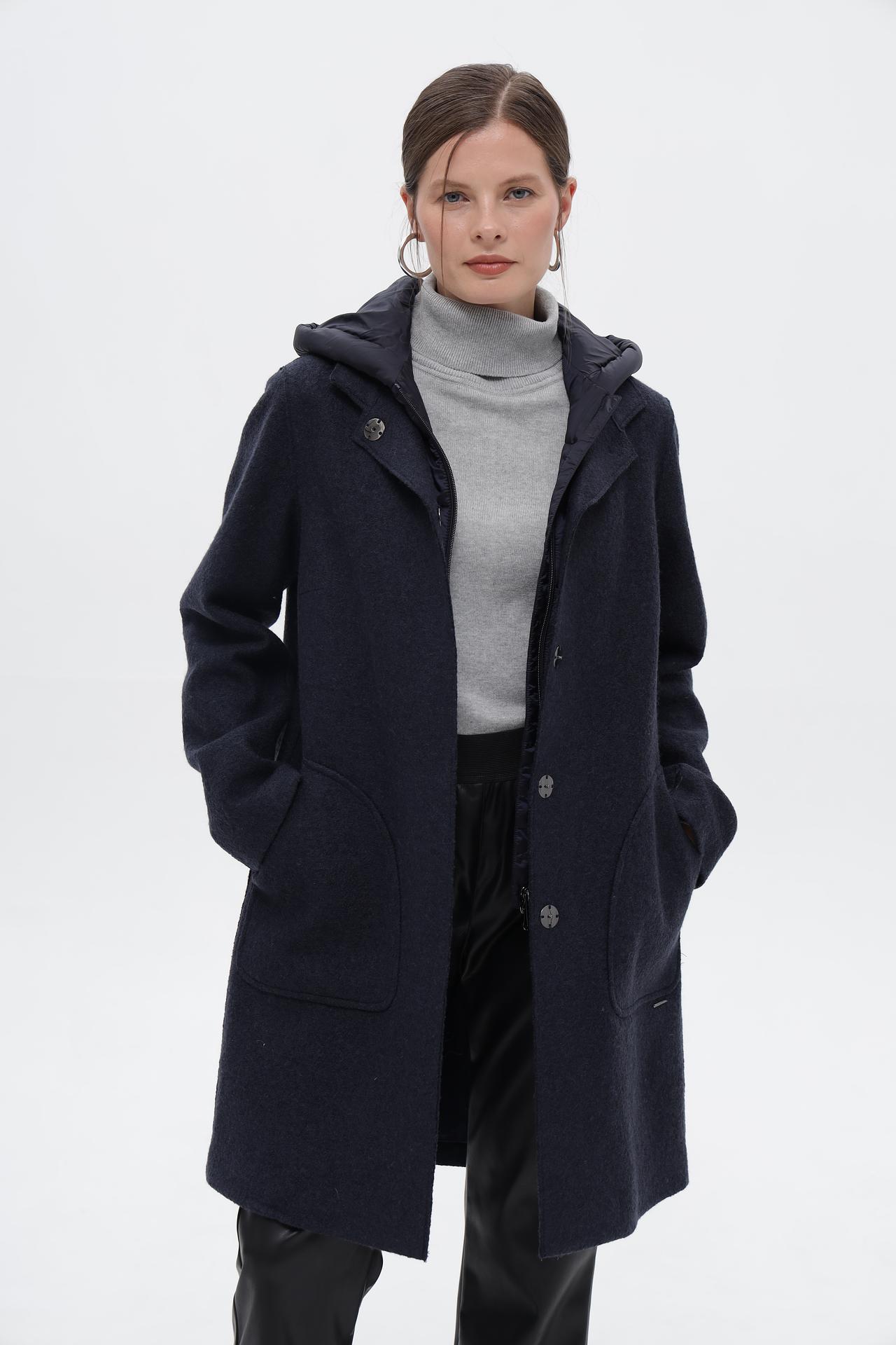 Элегантное пальто Bugatti из премиальной ткани, сочетающей в себе 50% шерсти и 50% вискозы. Классический дизайн и безупречный крой делают это пальто идеальным выбором для современной женщины. Тёмно-синее пальто Bugatti станет незаменимой вещью в вашем гардеробе.