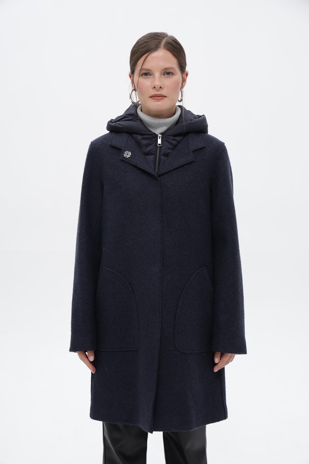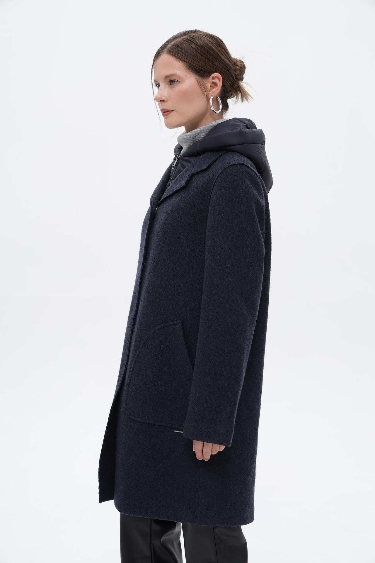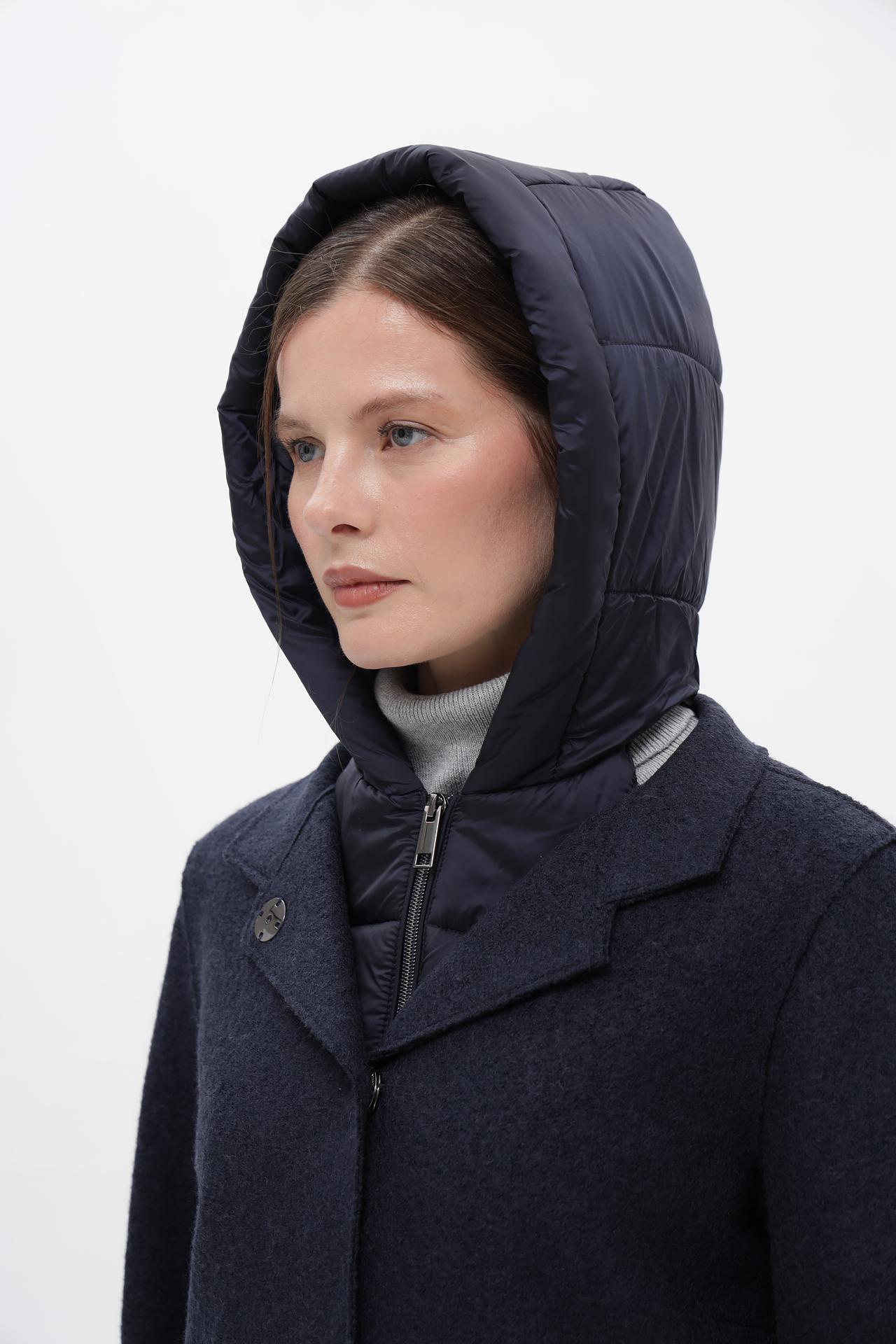 Пальто Bugatti, тёмно-синее, с капюшоном