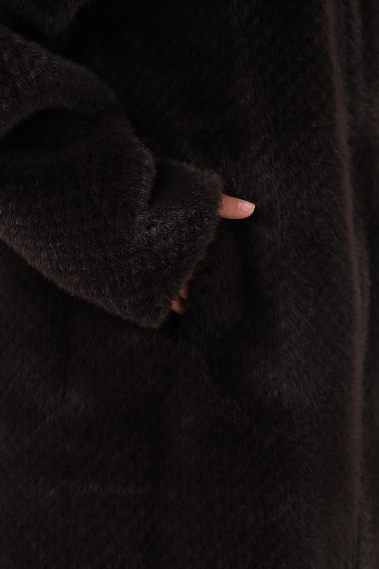 - Материал: Пальто изготовлено из 100% полиэстера, что обеспечивает легкость, износостойкость и простоту в уходе. Материал приятен на ощупь и отлично сохраняет тепло.