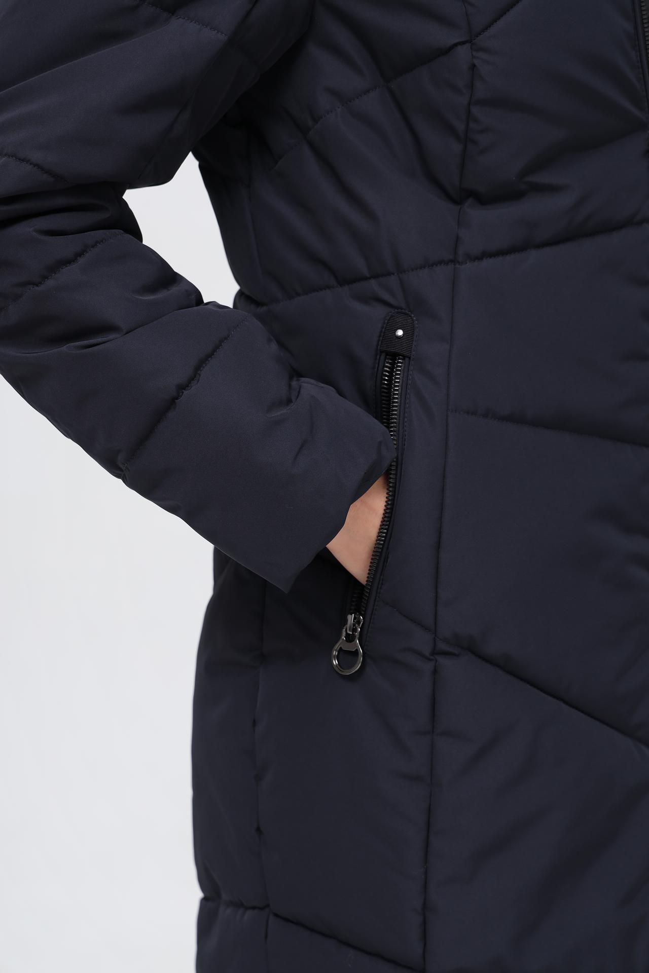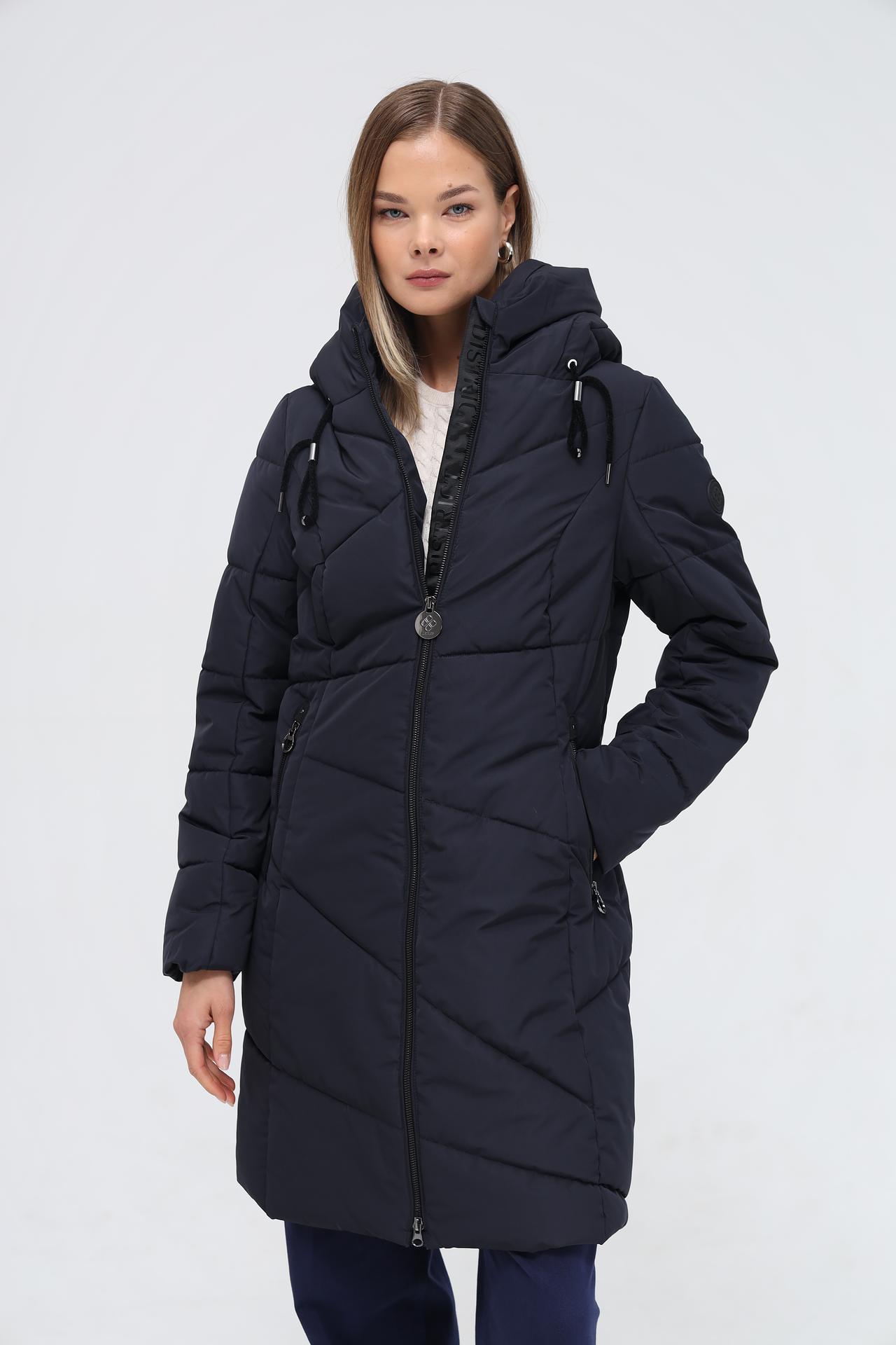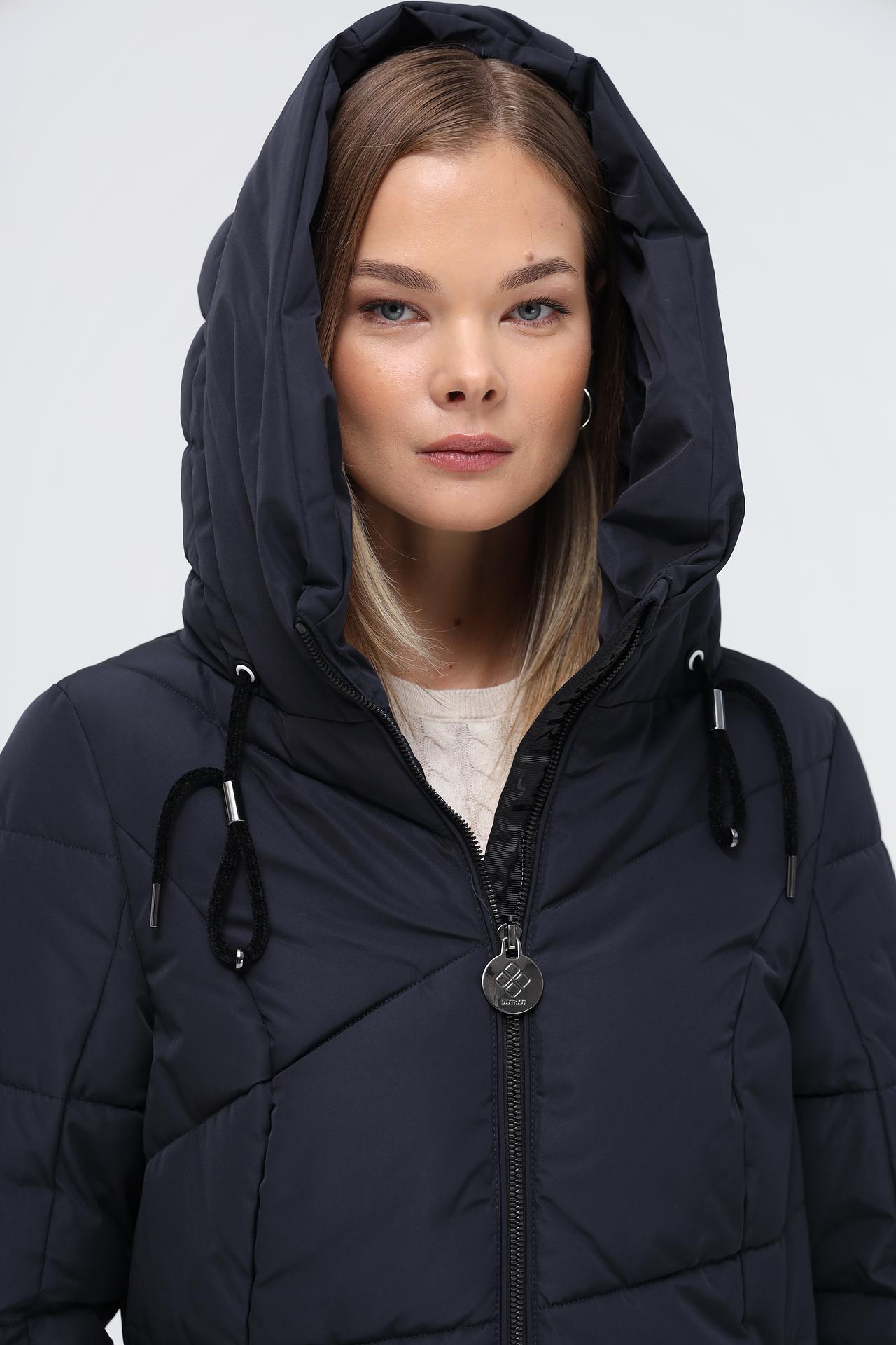 Пальто District, зимнее, тёмно-синее, с капюшоном