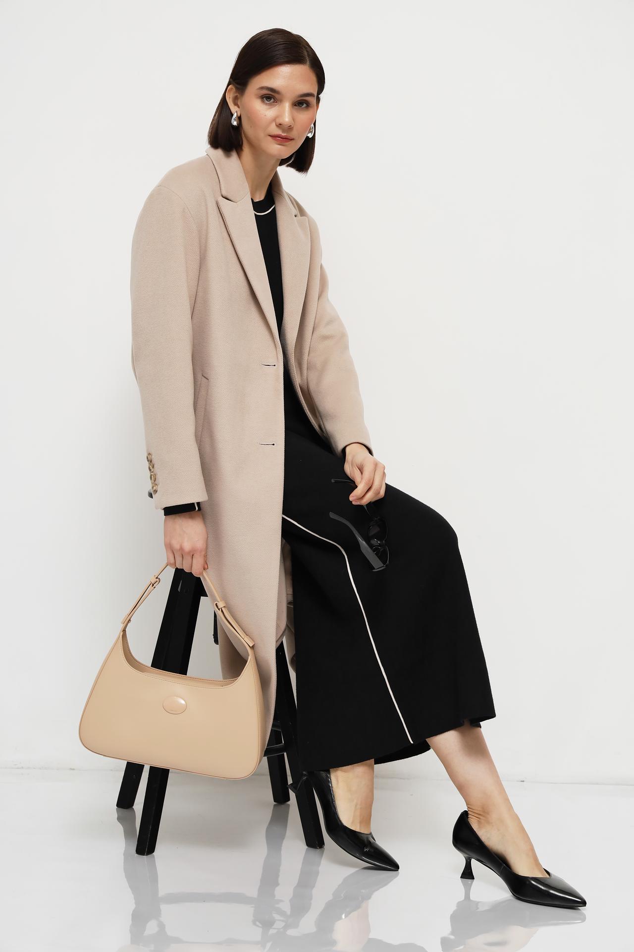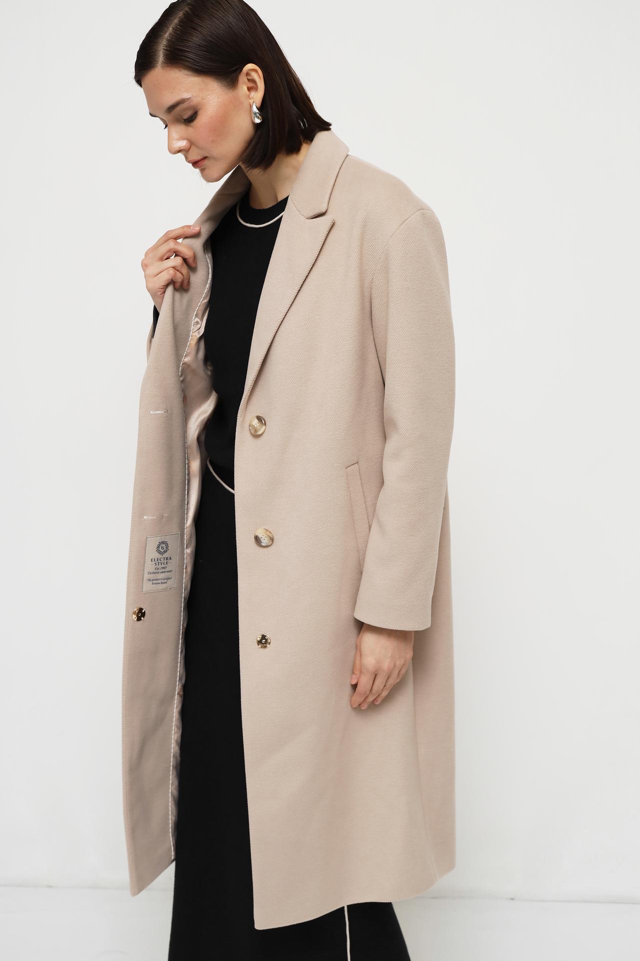 Пальто Electra style бежевое, прямое, с пуговицами