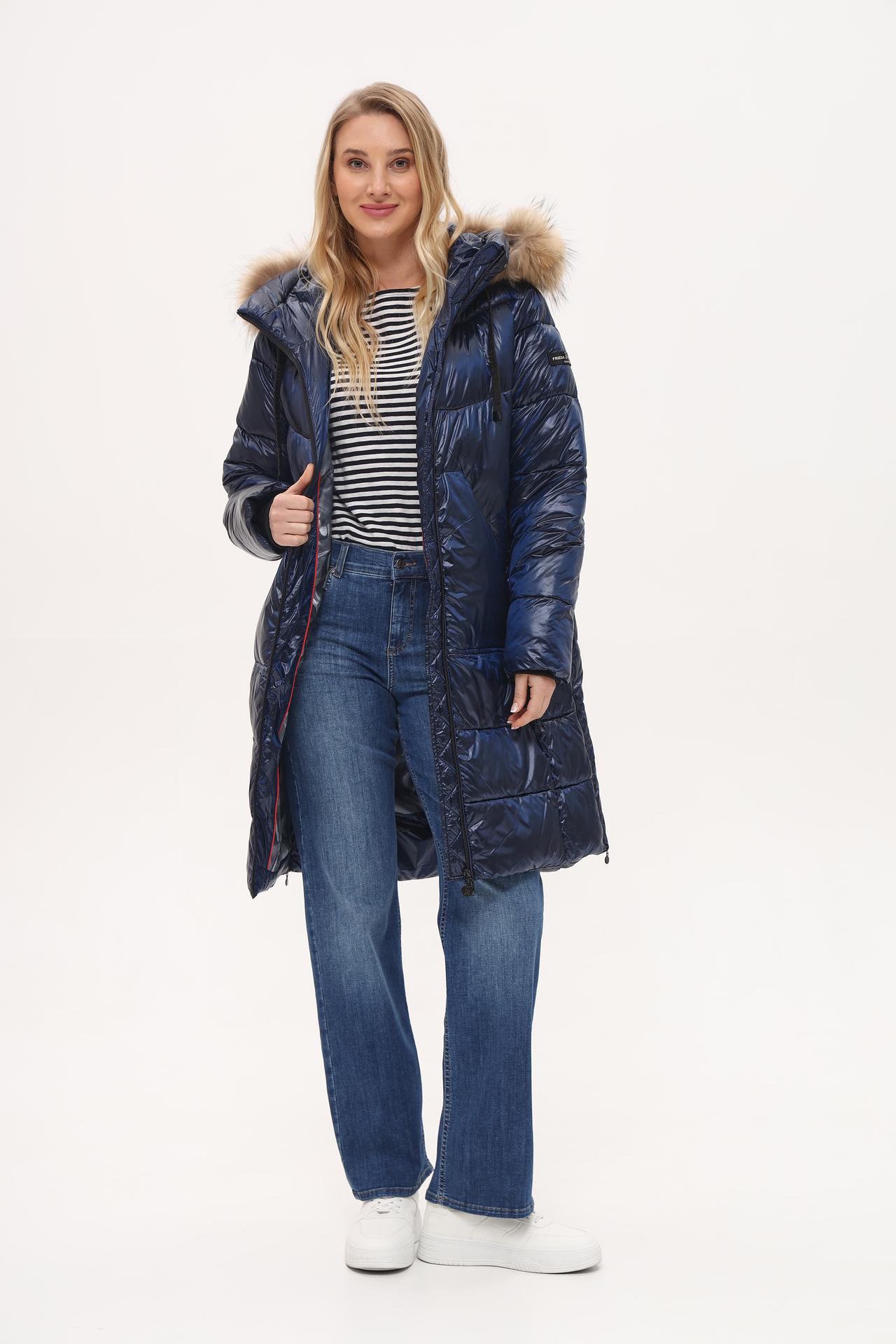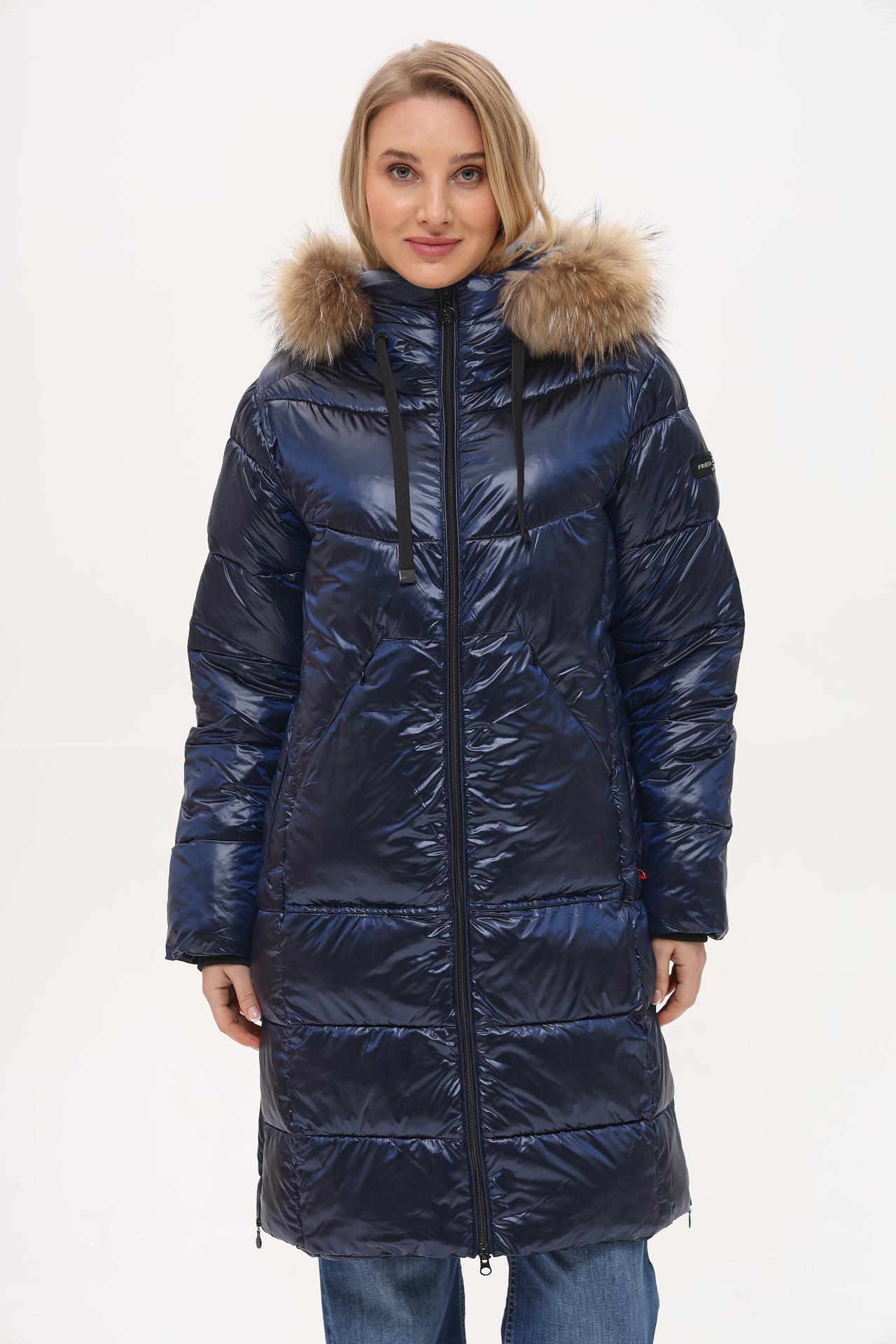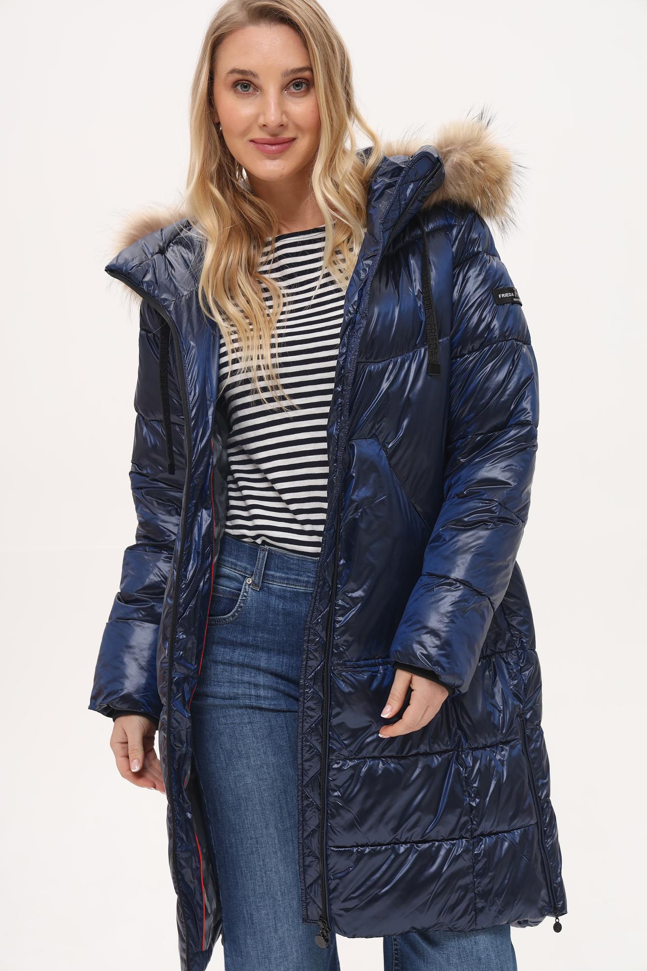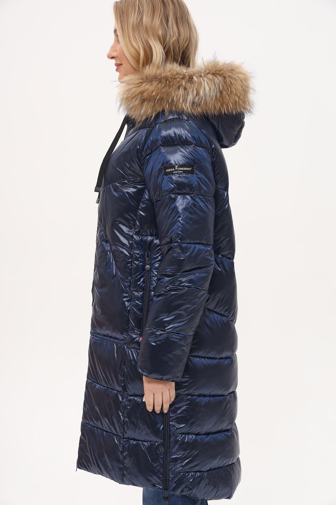 Пальто Frieda and Freddies с меховой отделкой, синее