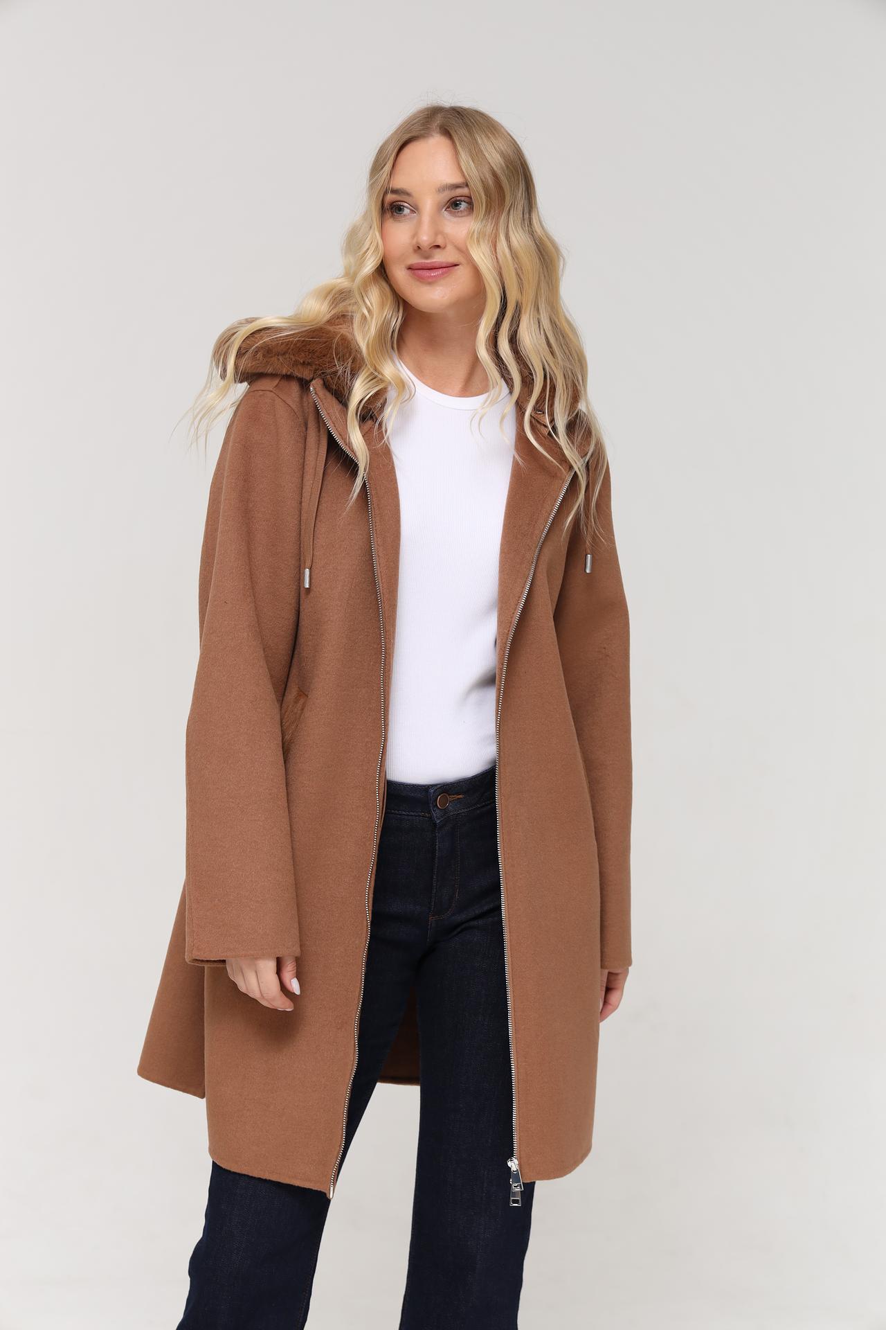Пальто прямого силуэта с застежкой на молнию отлично подходит для повседневной носки и легко комбинируется с различными элементами гардероба. Капюшон с отделкой из искусственного меха добавляет образу роскоши и обеспечивает дополнительную защиту от непогоды. Это шерстяное пальто станет незаменимой вещью в вашем осенне-зимнем гардеробе.
