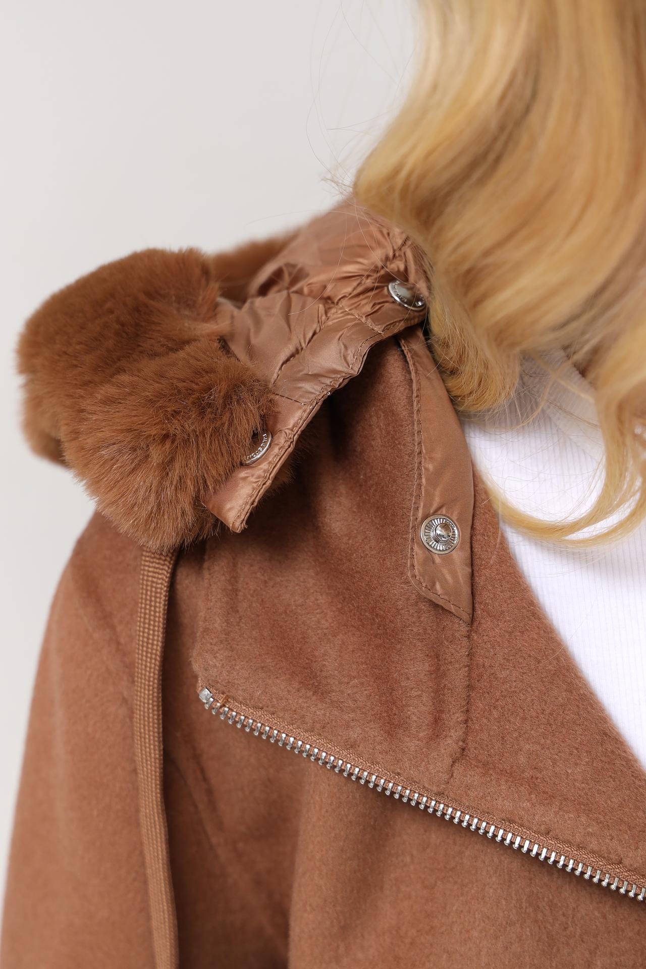 Пальто Milestone с капюшоном и меховой отделкой, кэмел