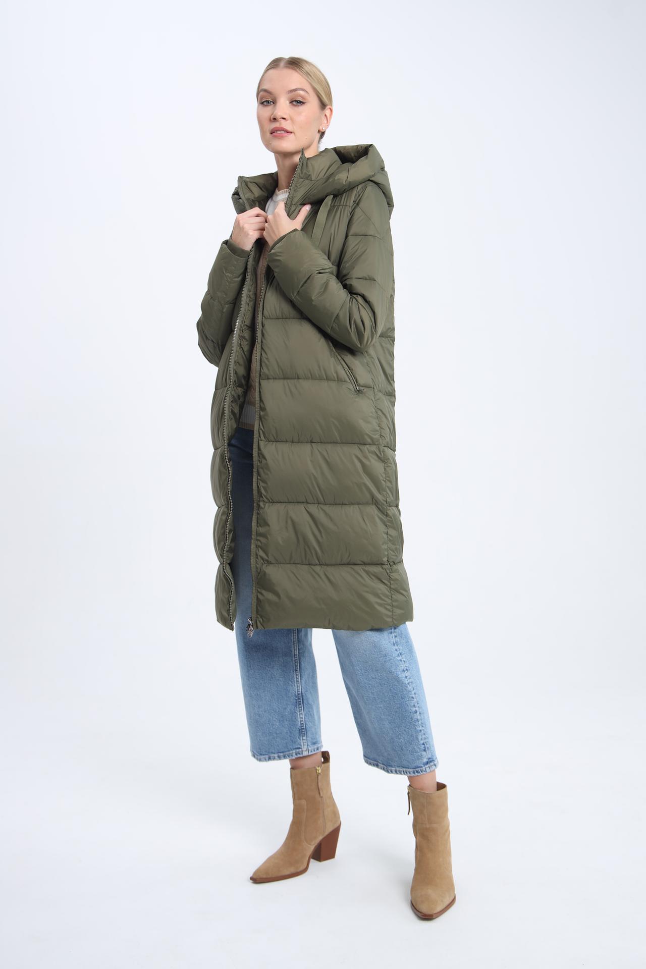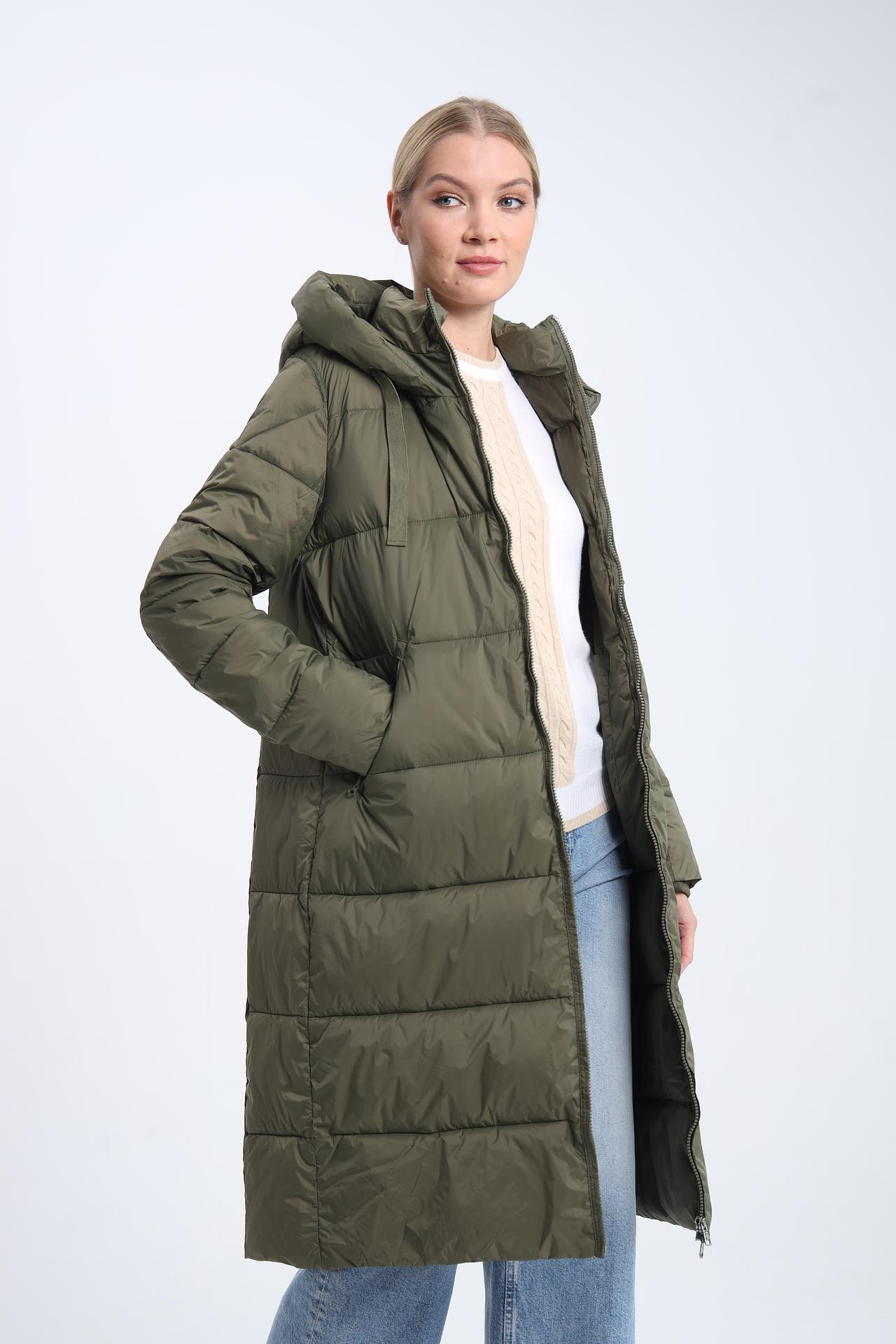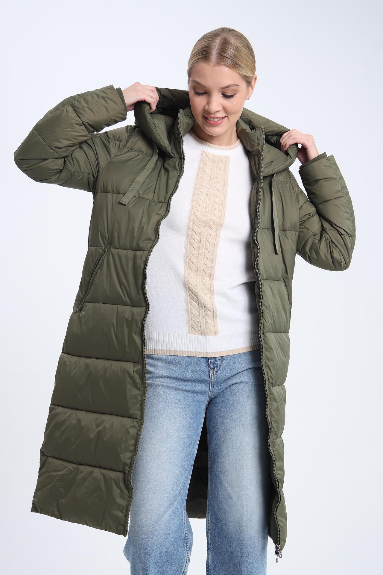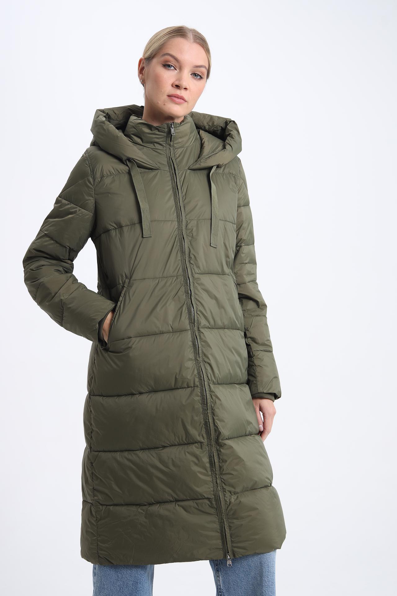 Пальто прямого силуэта, длины макси, с капюшоном. Застегивается на удобную молнию. Два боковых кармана практичны и функциональны.