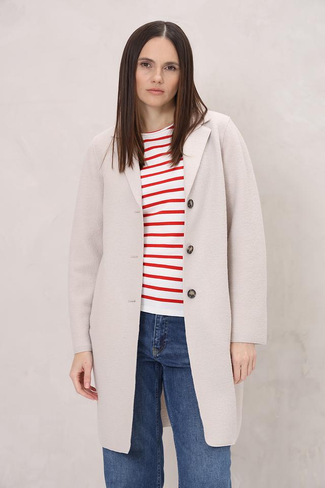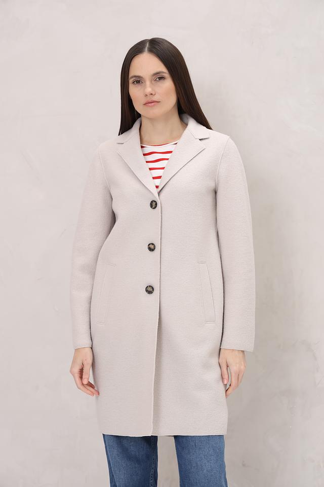 Это женское пальто от бренда Oui выполнено в нежном бежевом цвете. Пальто имеет классический прямой крой, который подходит для создания различных образов.