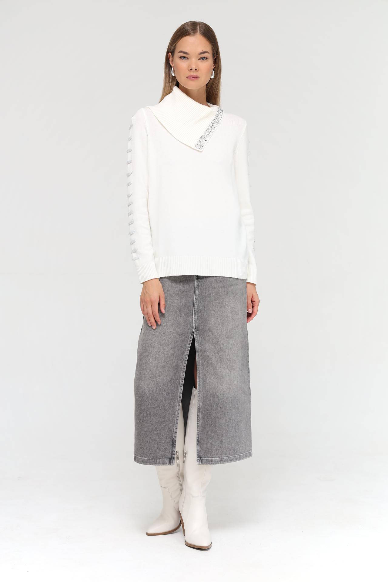 Белый пуловер Passioni с декоративными элементами