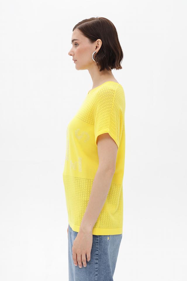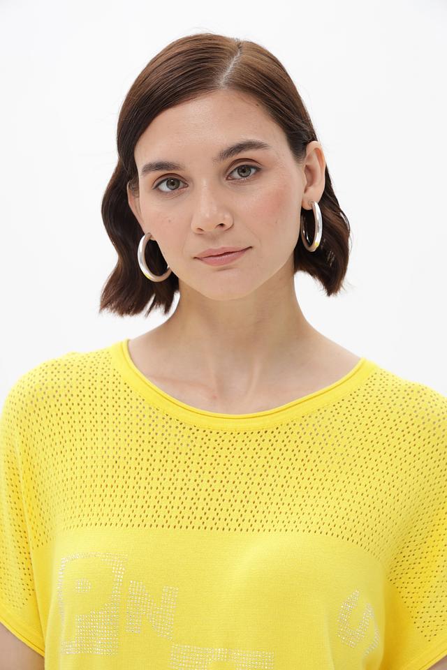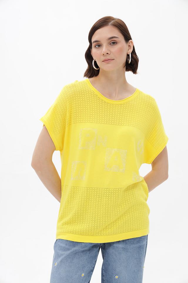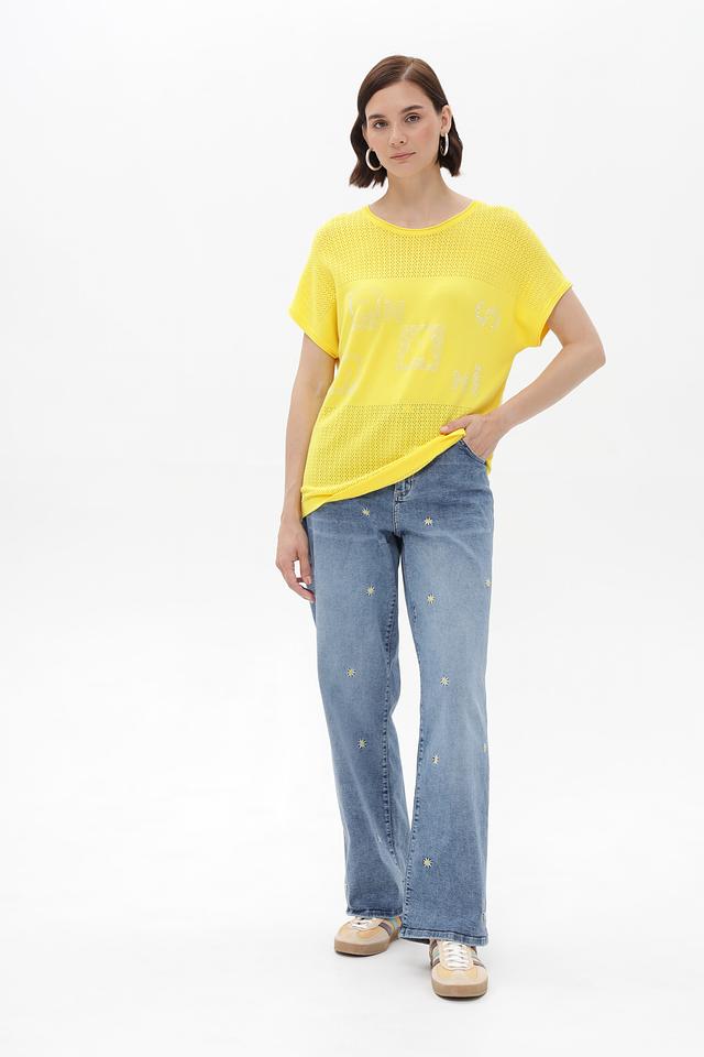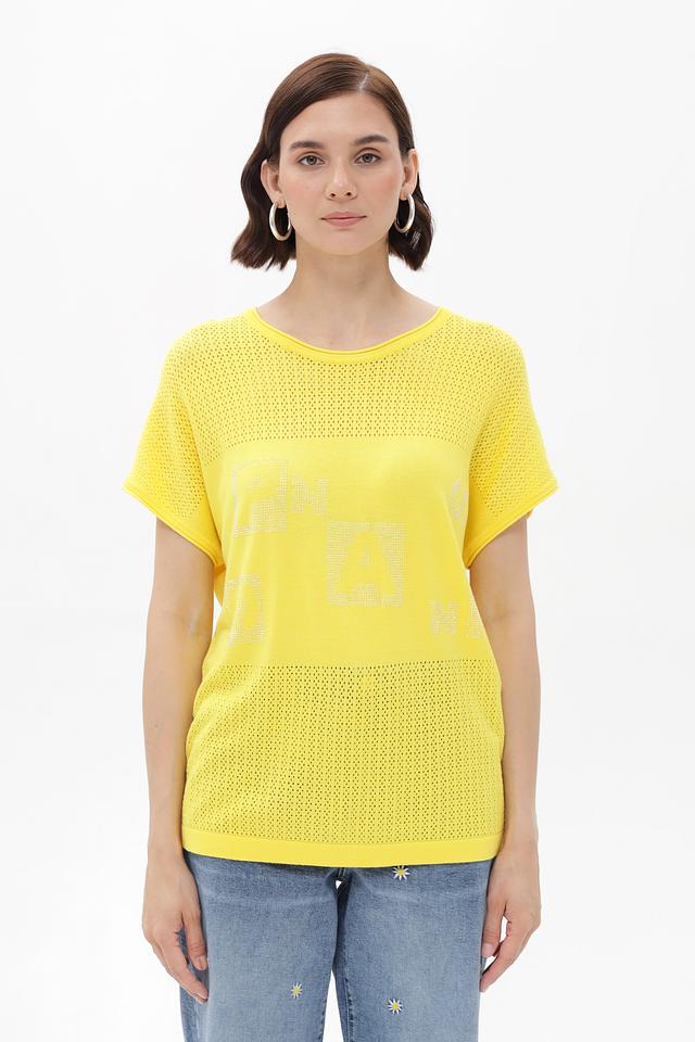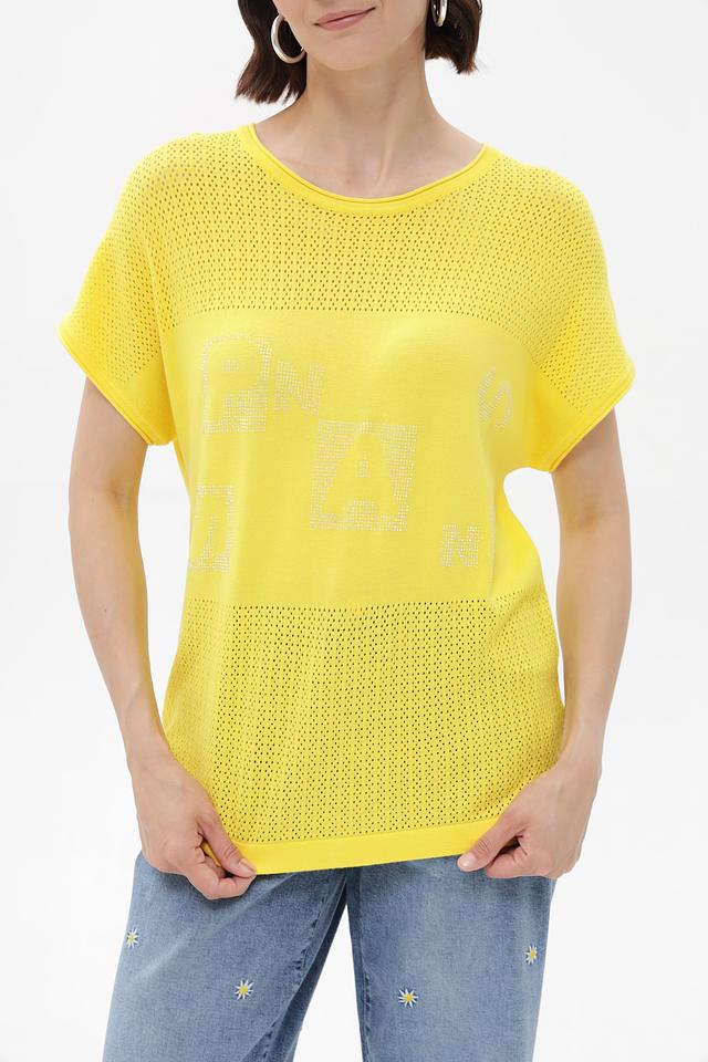 Жёлтый пуловер Passioni из вискозы с ажурной текстурой и вышивкой. Модель свободного кроя с короткими рукавами станет ярким акцентом вашего образа. Состав: 80% вискоза, 20% полиамид. Состав: вискоза 80%, полиамид 20%