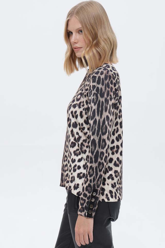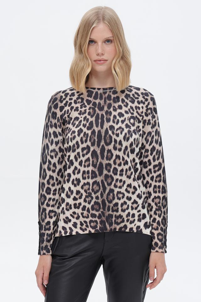 Элегантный пуловер от бренда Passioni станет ярким акцентом вашего образа. Модель выполнена в бежевых тонах с эффектным леопардовым принтом, который добавит образу динамичности.