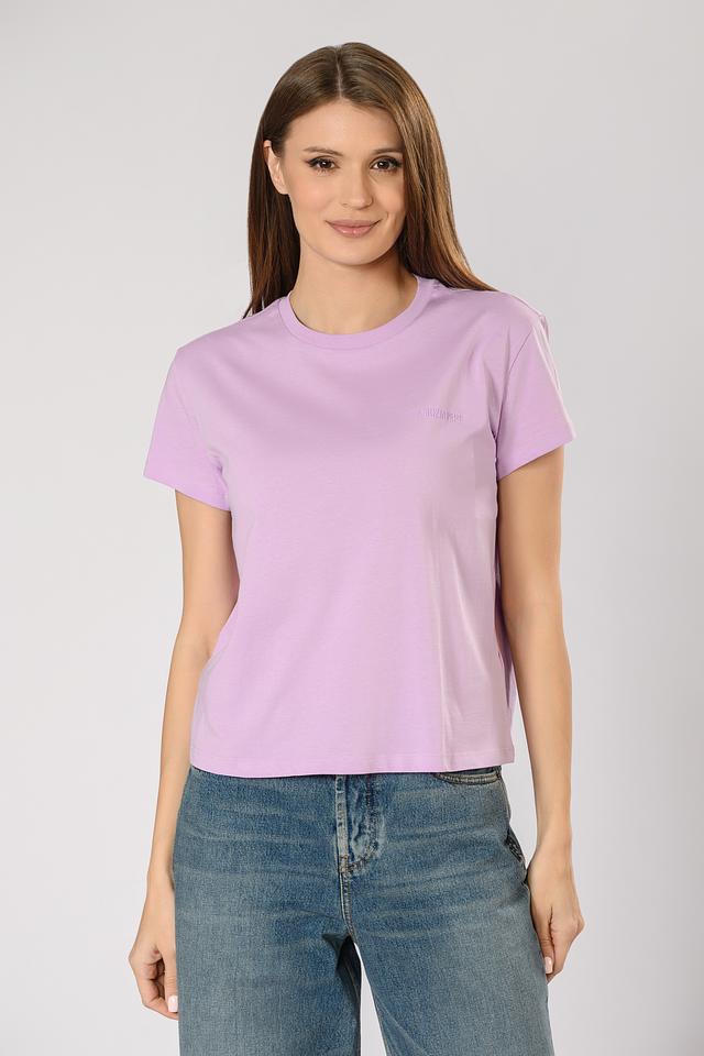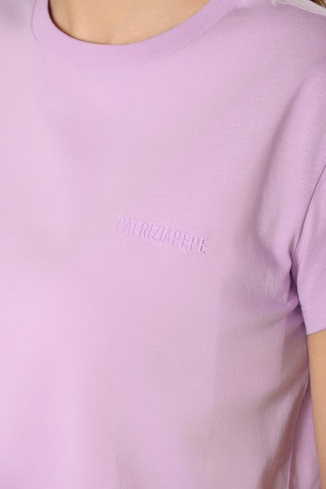 Женская футболка Patrizia Pepe лавандового цвета – это стильная и комфортная модель из 100% хлопка. Футболка имеет прямой крой и короткие рукава, а также украшена небольшим логотипом бренда на груди. Состав: хлопок 100%