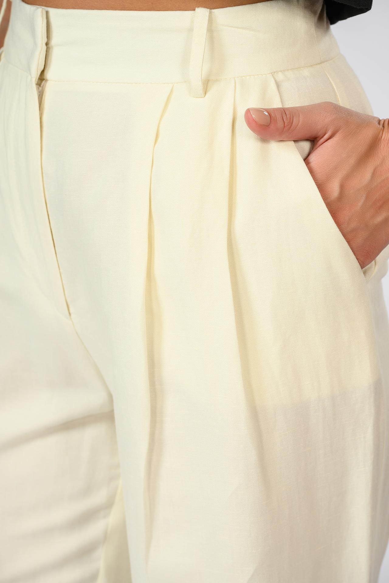 - Цвет: Брюки представлены в кремовом оттенке, который является универсальным и легко сочетается с различными цветами.