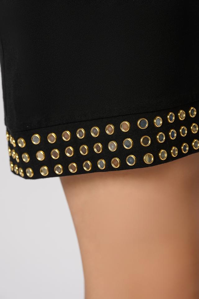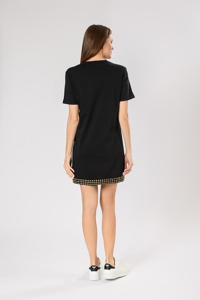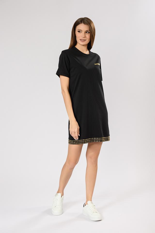 Особенностью этого платья является декоративная отделка в виде металлических заклепок по низу изделия. Это придает платью дерзкий и современный вид. Платье изготовлено из высококачественного хлопка, что обеспечивает комфорт при носке и приятные ощущения на коже.