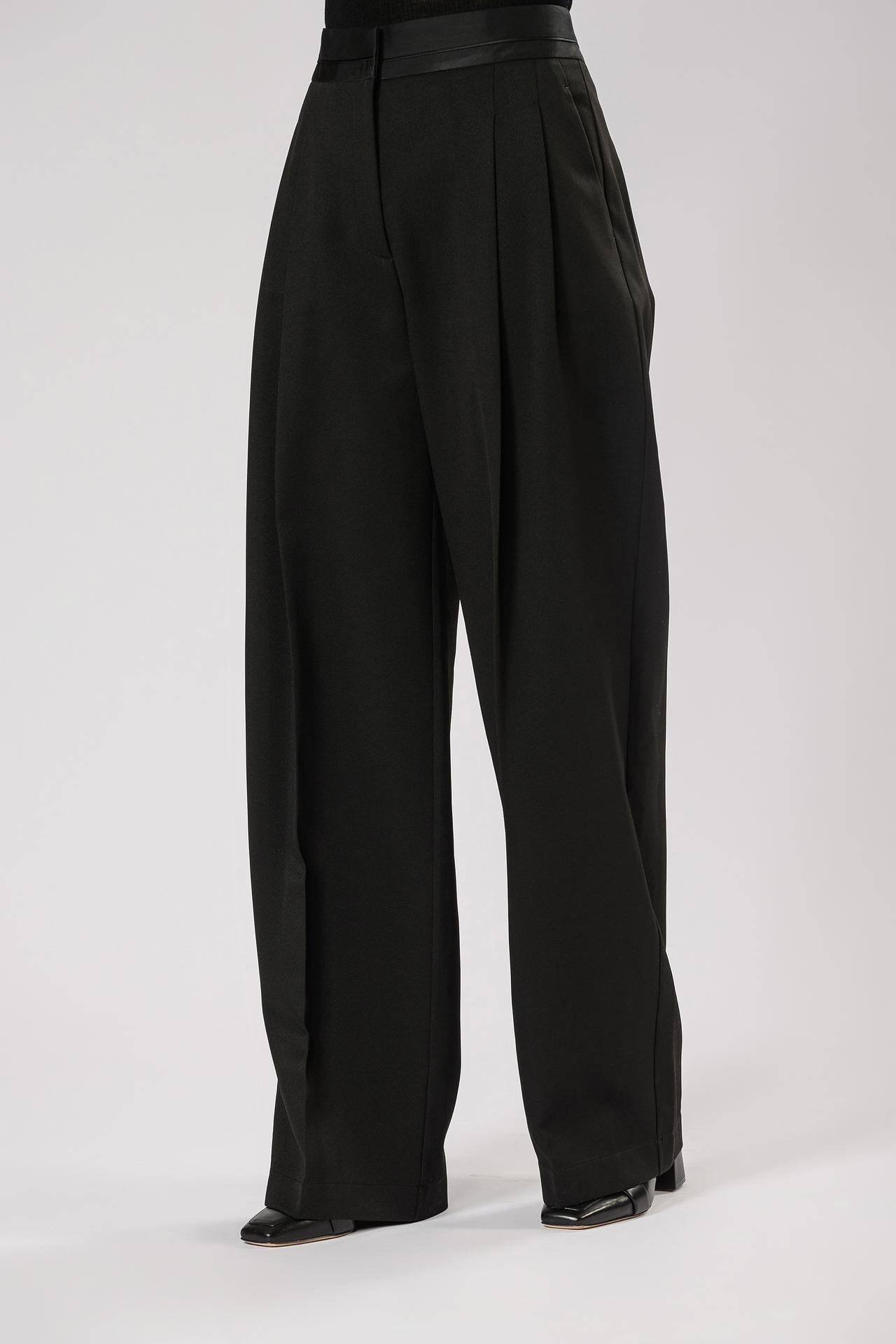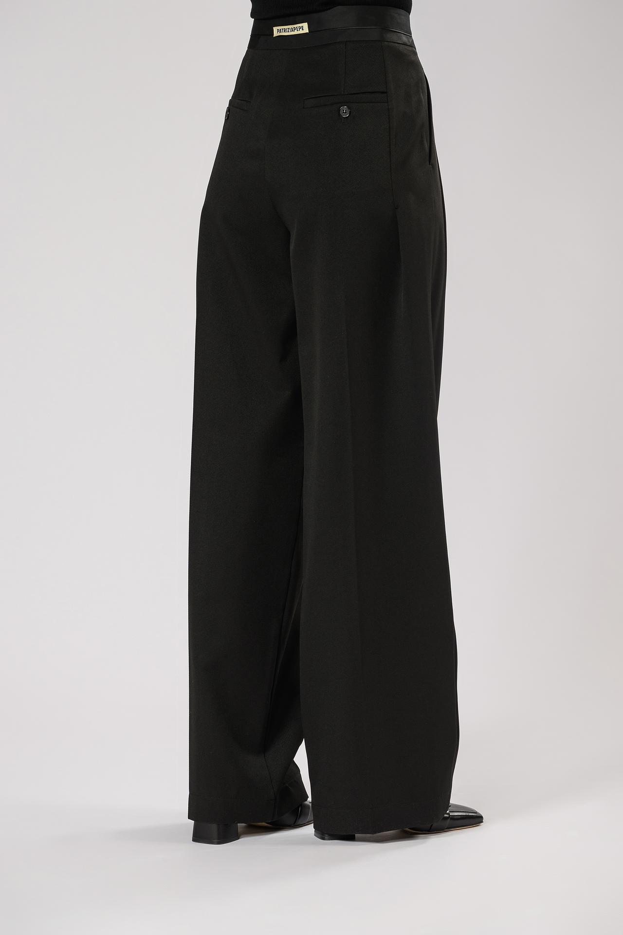 - Крой: Широкие брюки с высокой талией визуально удлиняют силуэт и создают модный образ. Свободный крой гарантирует максимальный комфорт в течение всего дня.