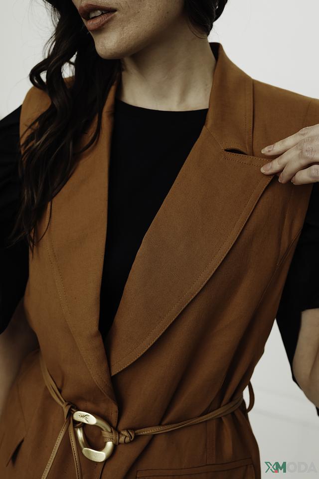 Платье-жилет от Patrizia Pepe выполнено из сочетания льна и вискозы, что обеспечивает комфорт и воздухопроницаемость в теплую погоду. Преобладающий цвет – терракотовый, придающий изделию изысканность и актуальность.