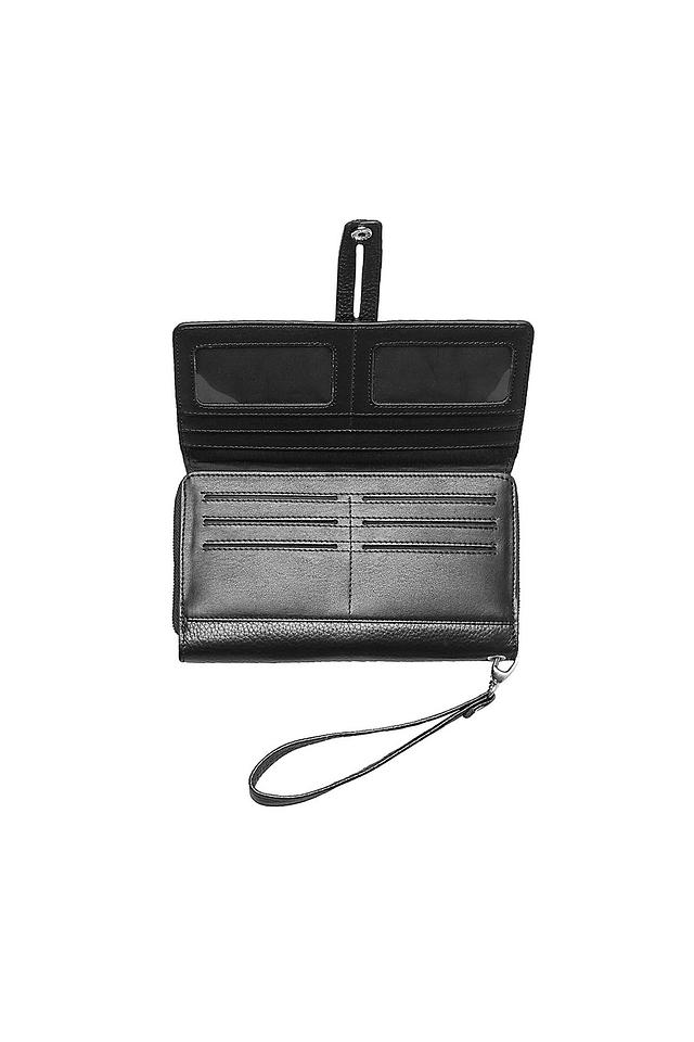 Текстурированная поверхность кожи придает клатчу особый шарм и делает его приятным на ощупь. Чёрный цвет делает его универсальным дополнением к любому образу.