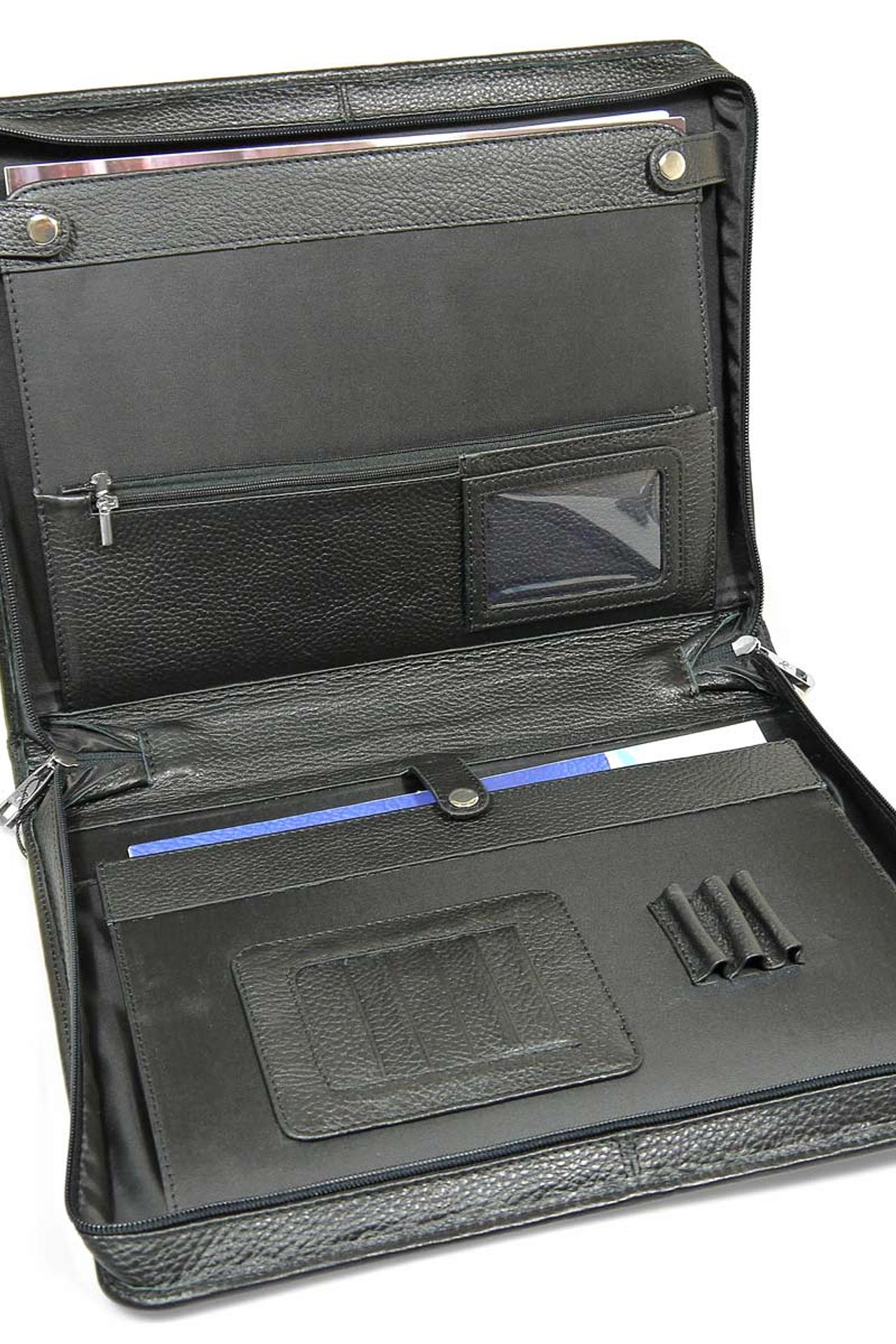 Аксессуар отличается продуманной организацией внутреннего пространства, что позволяет удобно разместить все необходимые документы, ноутбук или планшет, а также мелкие канцелярские принадлежности. Подкладка выполнена из качественного текстиля, что гарантирует долговечность и износостойкость.