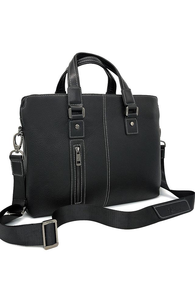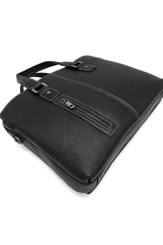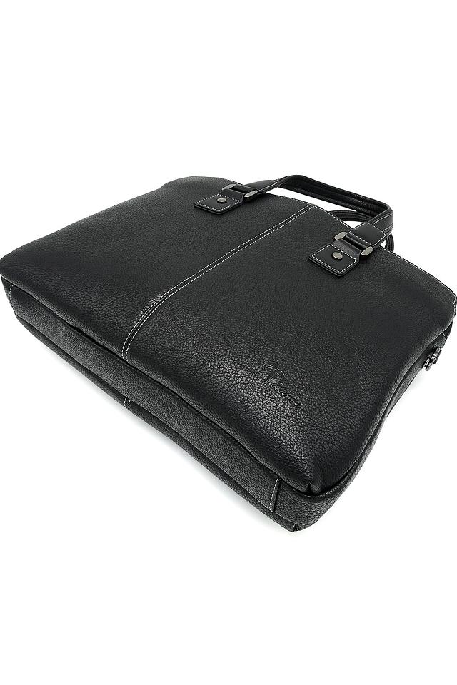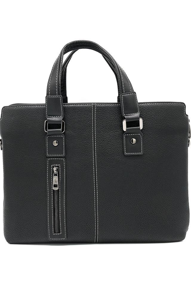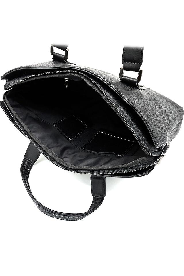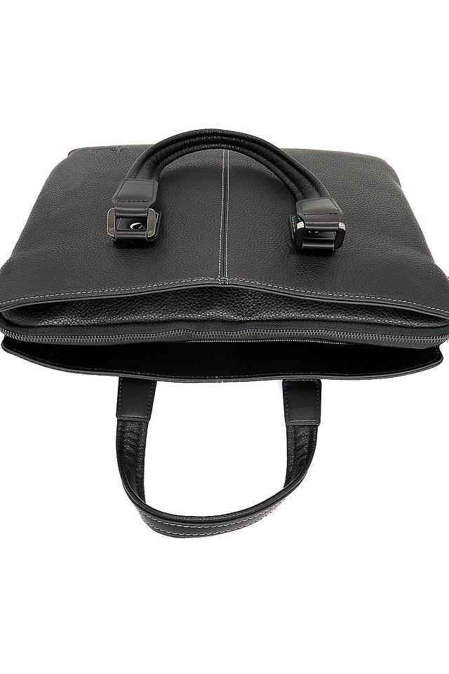 Сумка имеет классический дизайн, дополненный аккуратной прострочкой и минималистичным логотипом бренда. Чёрный цвет делает её универсальной и подходящей к любому стилю одежды. Внутри сумки предусмотрено несколько отделений, позволяющих удобно разместить документы, ноутбук и другие необходимые вещи.