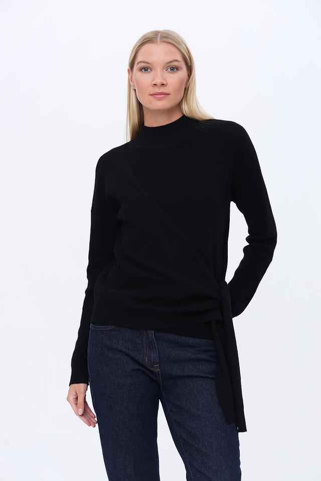 Чёрный джемпер Penny Black с запахом и длинными рукавами. Модель выполнена из мягкого трикотажа с добавлением кашемира, что обеспечивает комфорт и тепло. Оригинальный крой с акцентом на талии. Состав: вискоза 27%, нейлон 25%, хлопок 23%, шерсть 20%, кашемир 5%