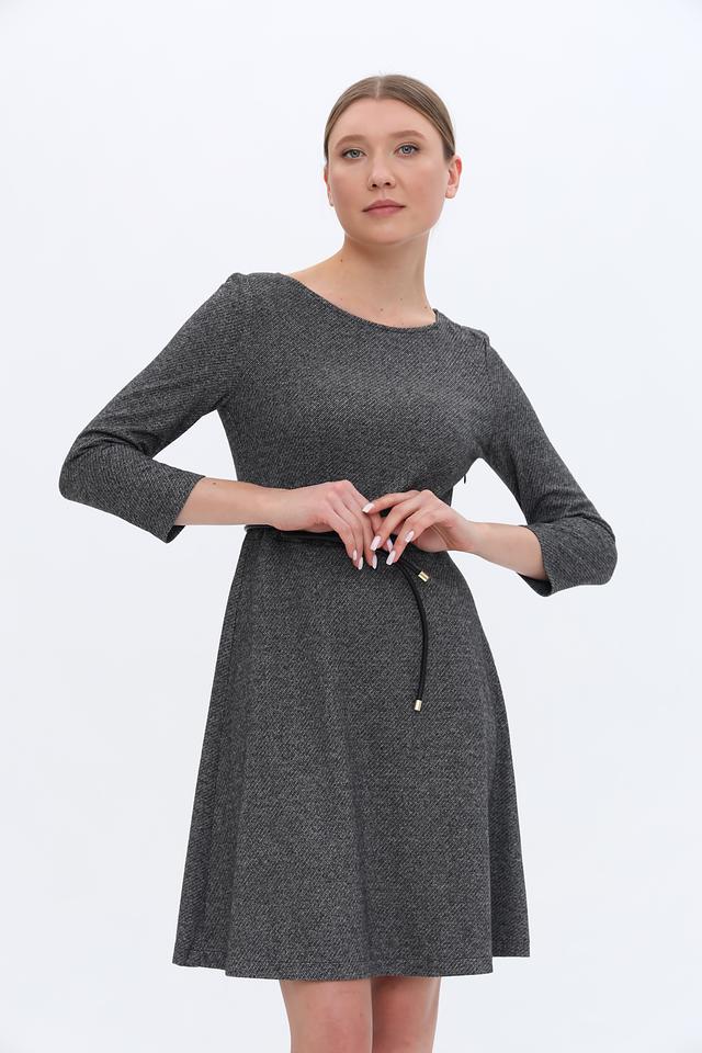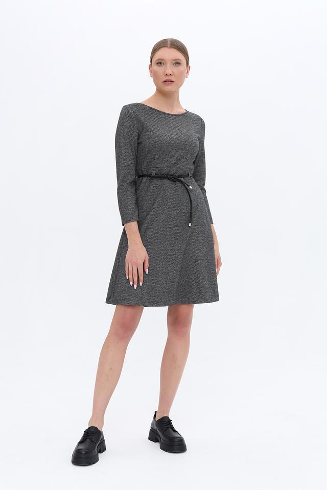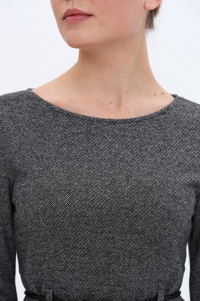 Это платье от Penny Black станет отличным дополнением к вашему гардеробу. Выполнено в сером цвете с мелким рисунком, напоминающим жатку. Модель имеет длину до колена и прямой крой, который обеспечивает свободу движений.