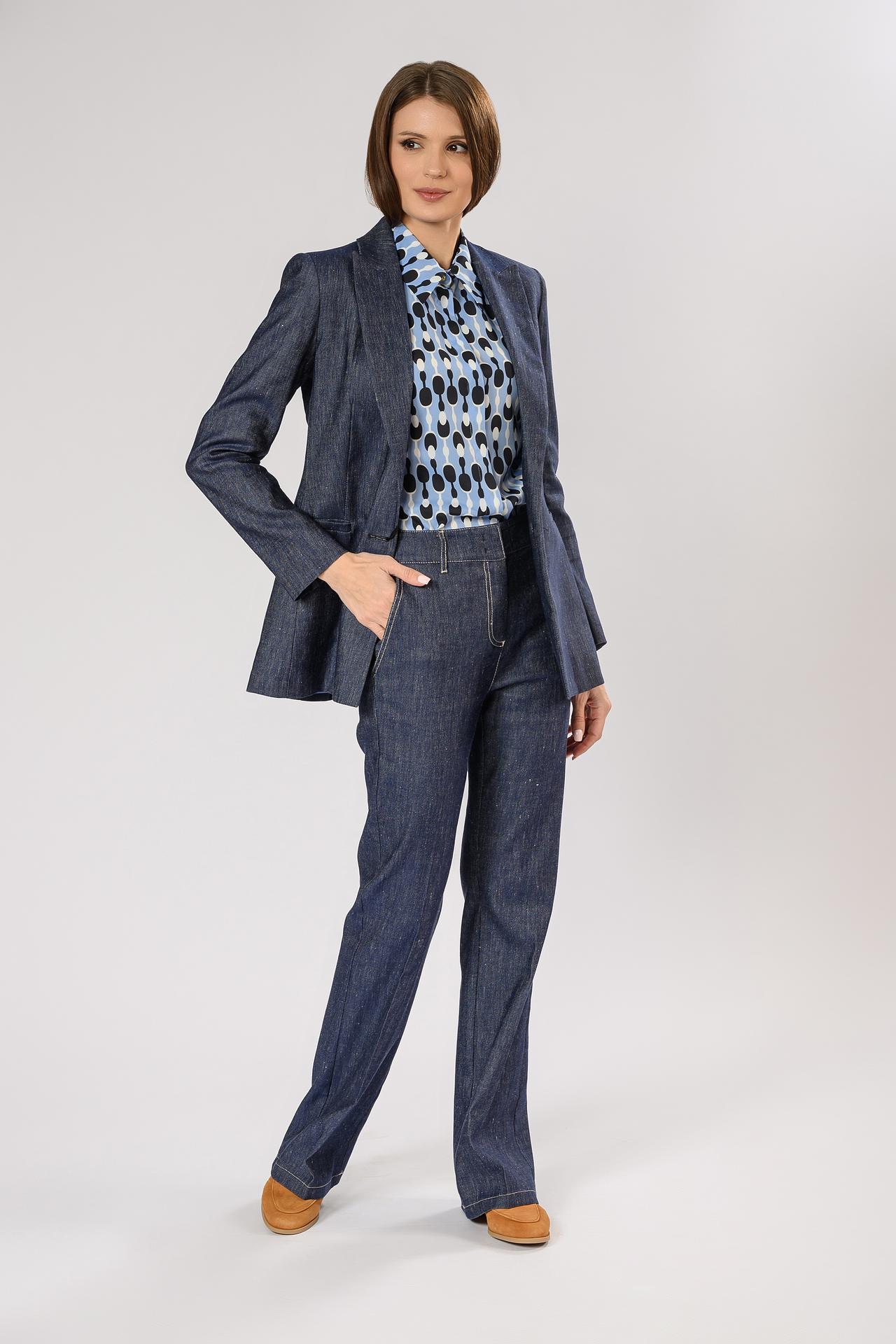 - Элегантные детали: Блуза дополнена классическим отложным воротником и аккуратными манжетами на рукавах. Золотистые пуговицы на воротнике и манжетах служат изысканным декоративным элементом, подчеркивающим статусность изделия.