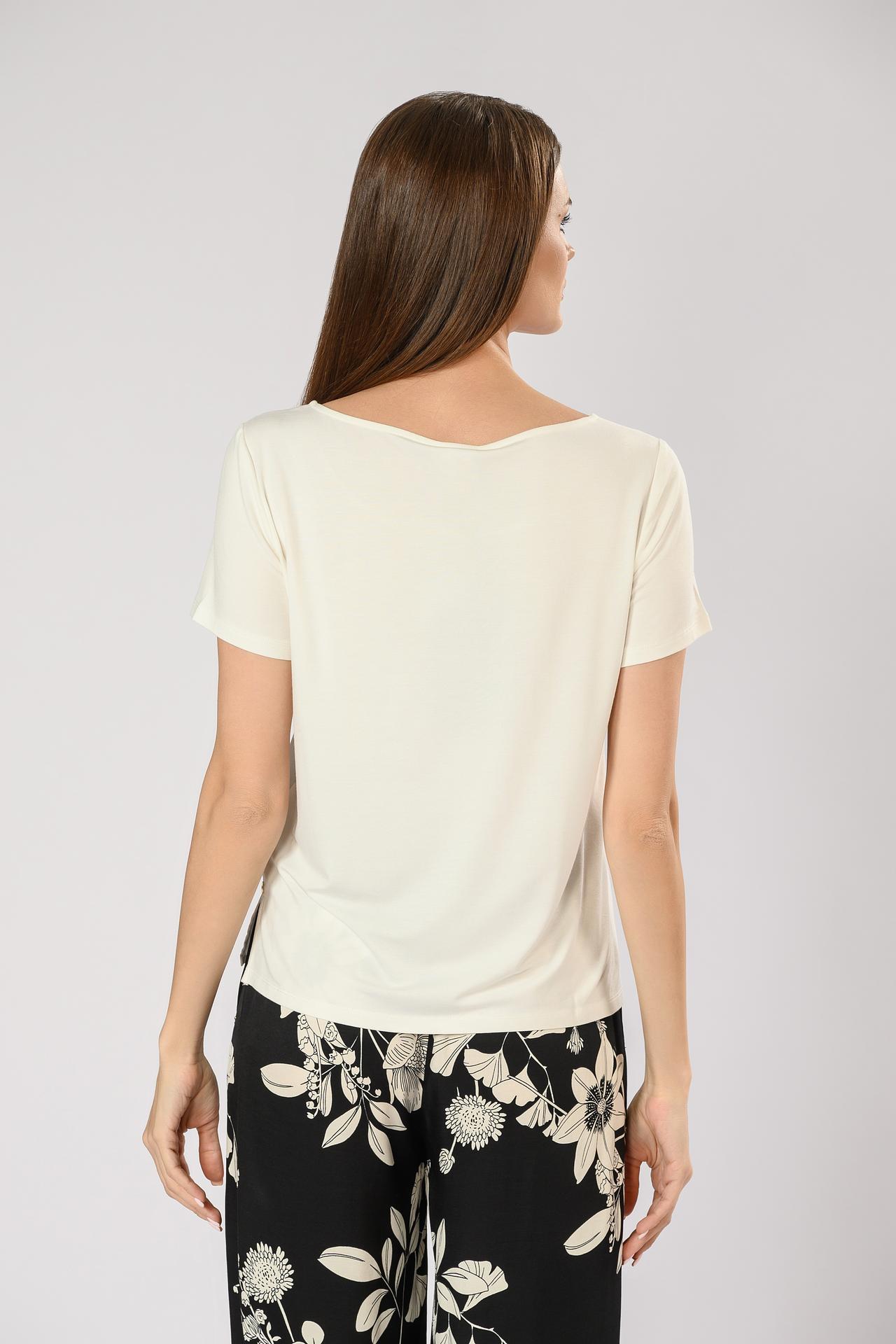 - Акцентный декор. Изящный цветочный декор придает футболке индивидуальность и шарм.