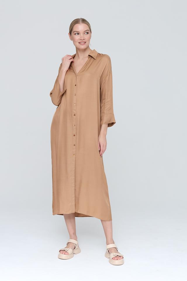 Бежевое платье Penny Black в стиле рубашки – это универсальный выбор для создания стильного и комфортного образа. Платье выполнено из 100% вискозы, что обеспечивает приятные ощущения при носке и отличную посадку по фигуре. Состав: вискоза 100%