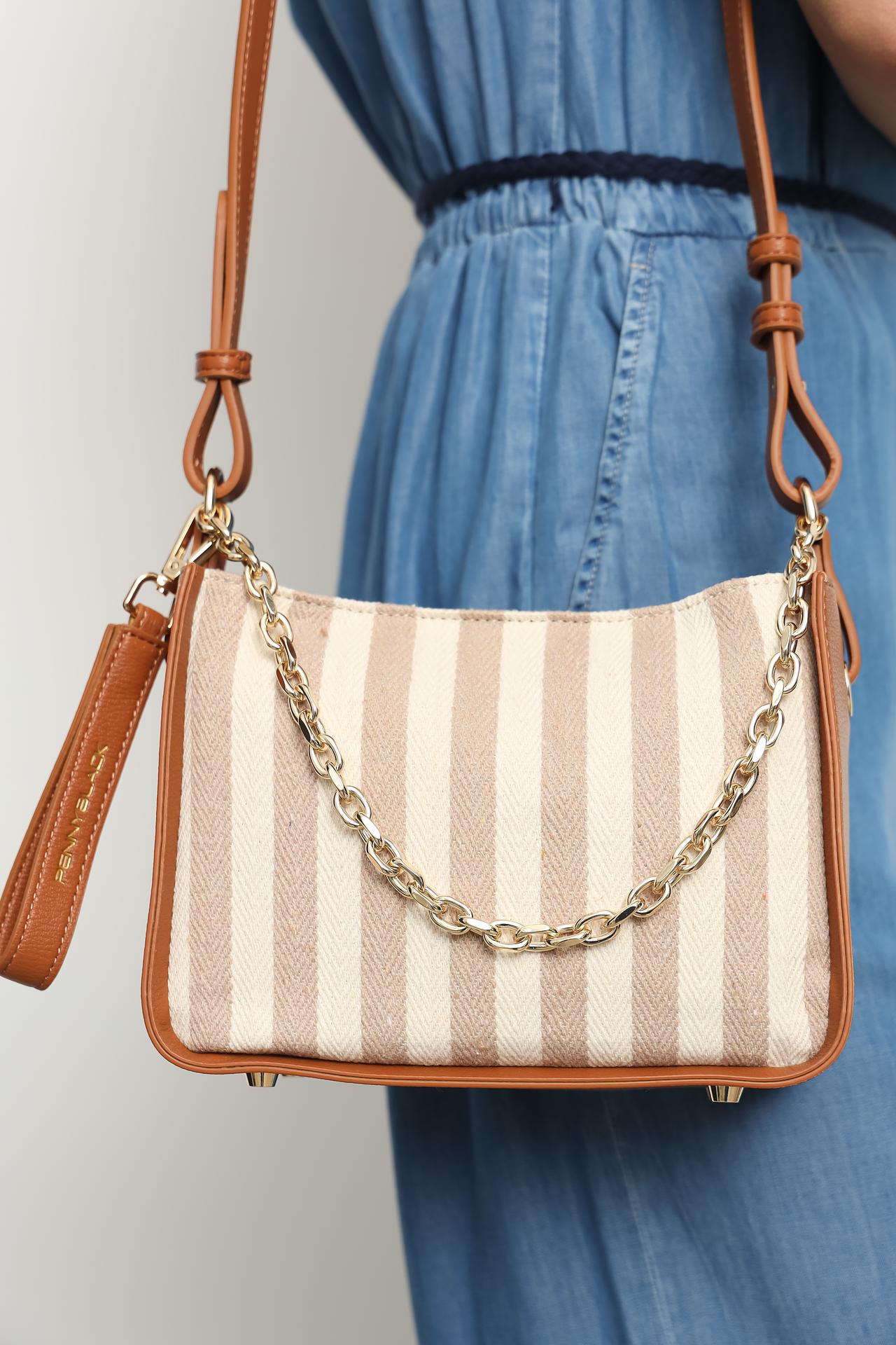 - Дизайн: Полосатый узор и декоративная цепочка придают сумке уникальный и современный вид.