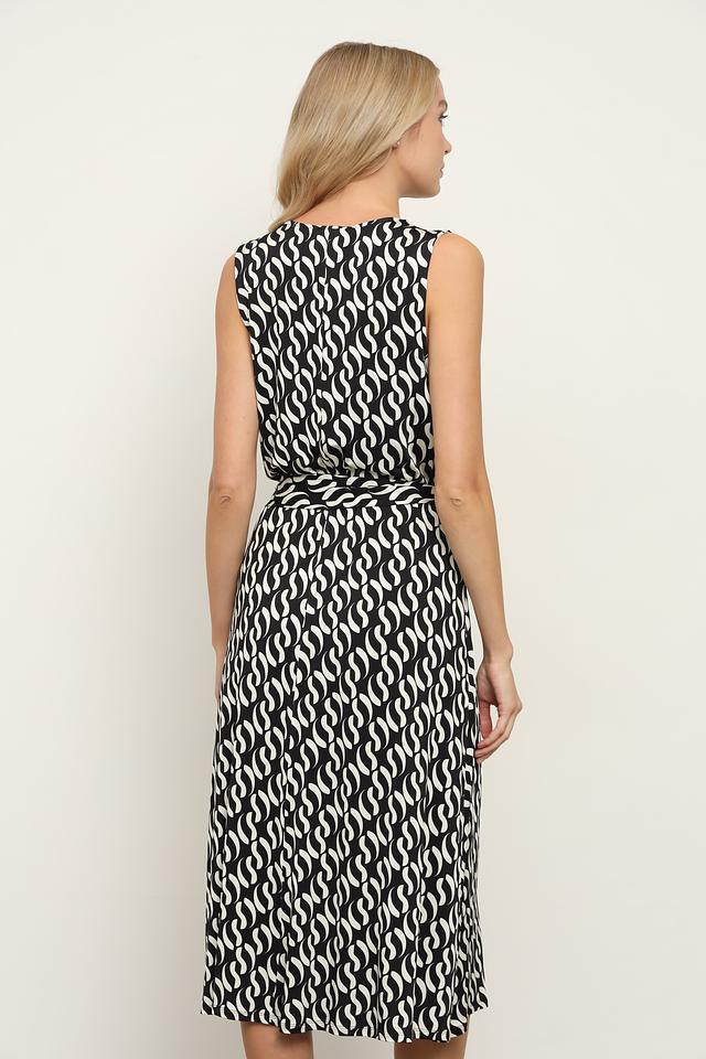 Это элегантное платье от Penny Black станет прекрасным дополнением к вашему гардеробу. Платье выполнено в классической чёрно-белой гамме с эффектным геометрическим принтом.