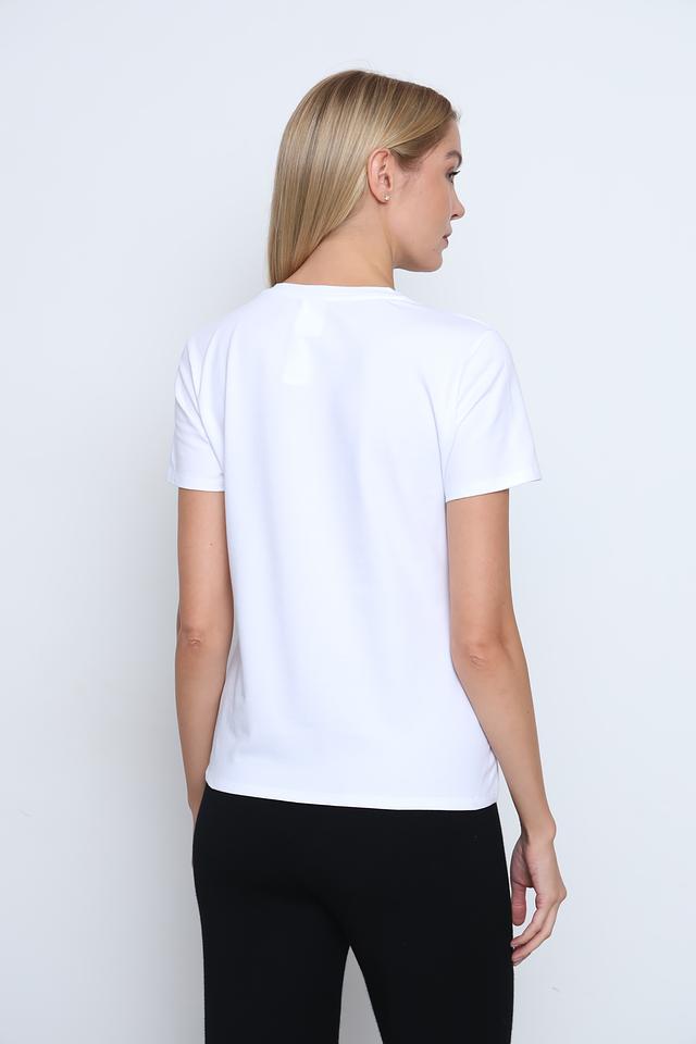 Женская футболка Penny Black белого цвета с оригинальным принтом "LOVE". Модель выполнена из мягкого хлопка с добавлением эластана для комфорта и хорошей посадки. Стильный и лаконичный дизайн. Состав: хлопок 95%, эластан 5%